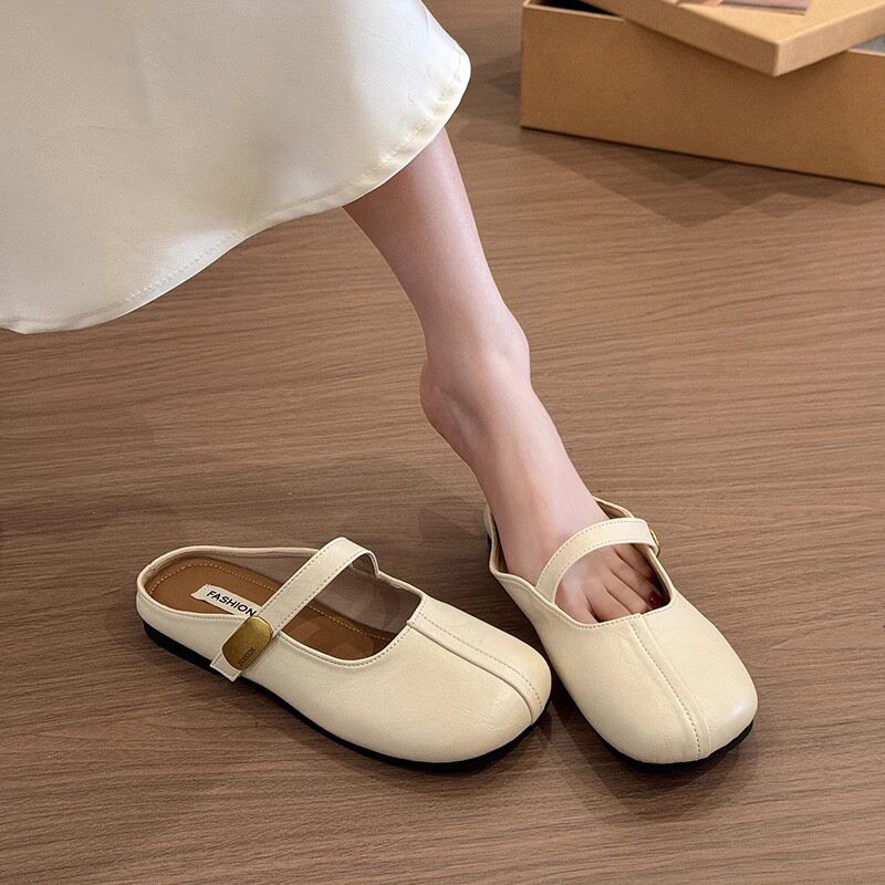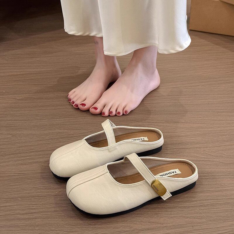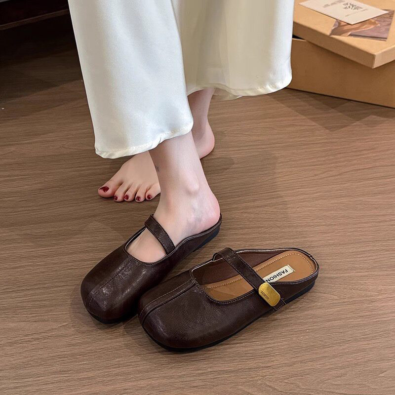 软牛皮~2026夏季新款外穿时尚休闲百搭凉拖鞋防滑包头半拖鞋女生