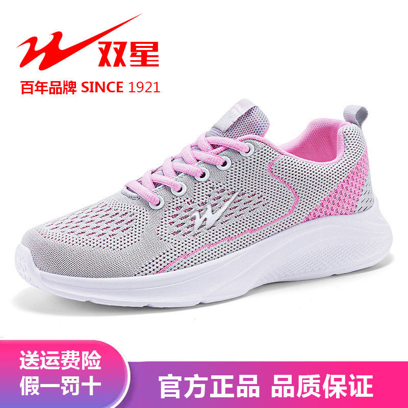 双星女鞋断码清仓女士飞织网面透气运动休闲鞋软底轻便中年妈妈鞋