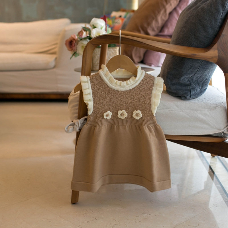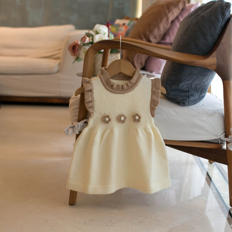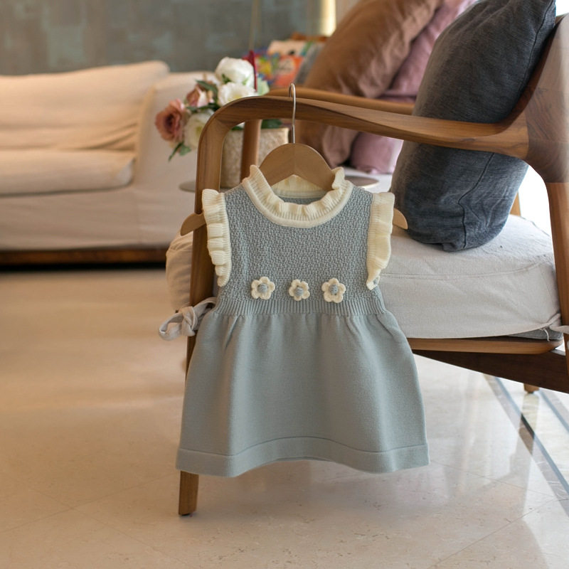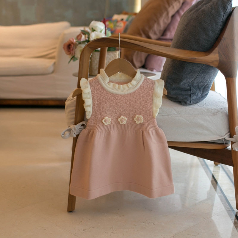 韩版中长款儿童毛衣马甲春秋女童婴儿木耳边背心裙公主针织连衣裙