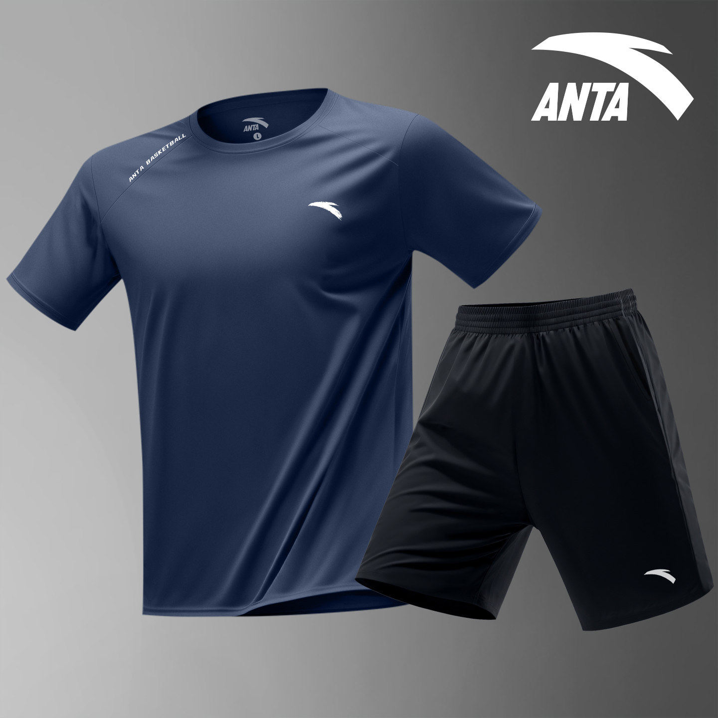 安踏运动套装男夏季新款冰丝短袖T恤短裤中考体测跑步速干两件套