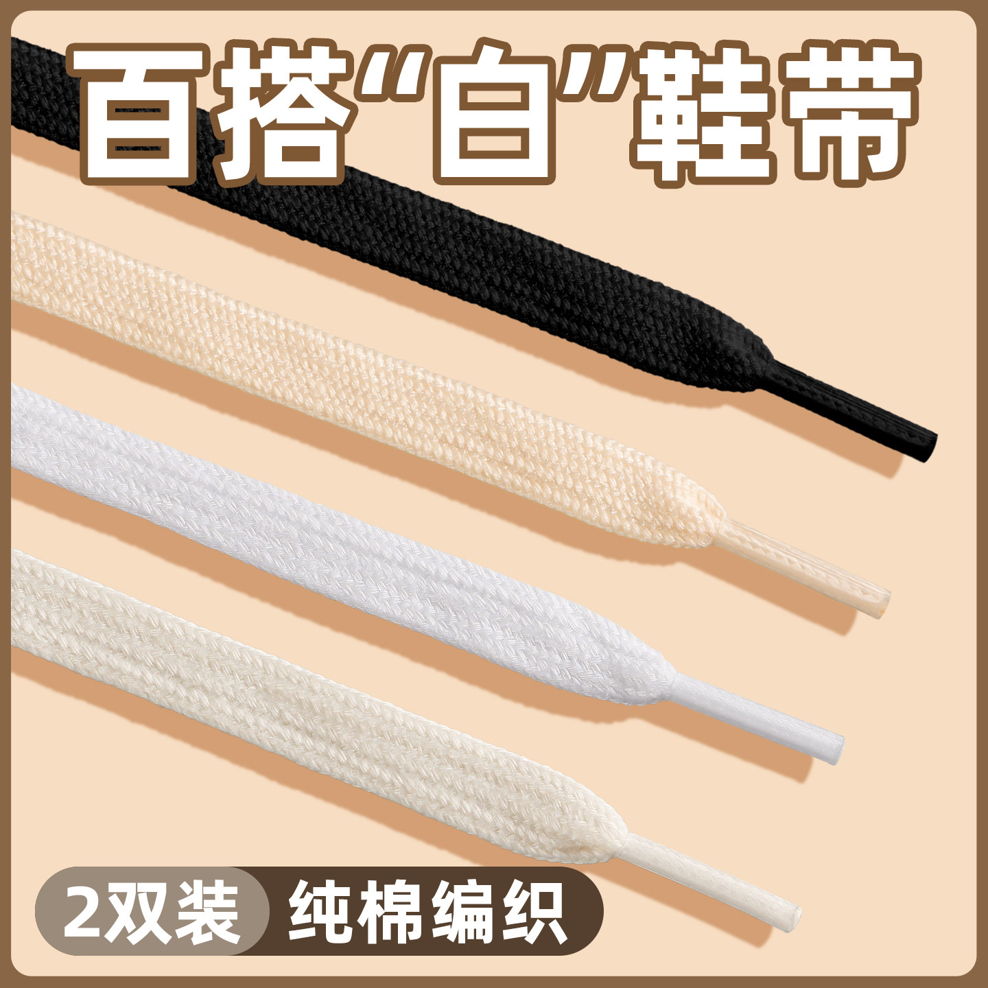 白色鞋带纯棉鞋带女款小白鞋男款鞋带扁平贝壳头百搭米黑色鞋带绳