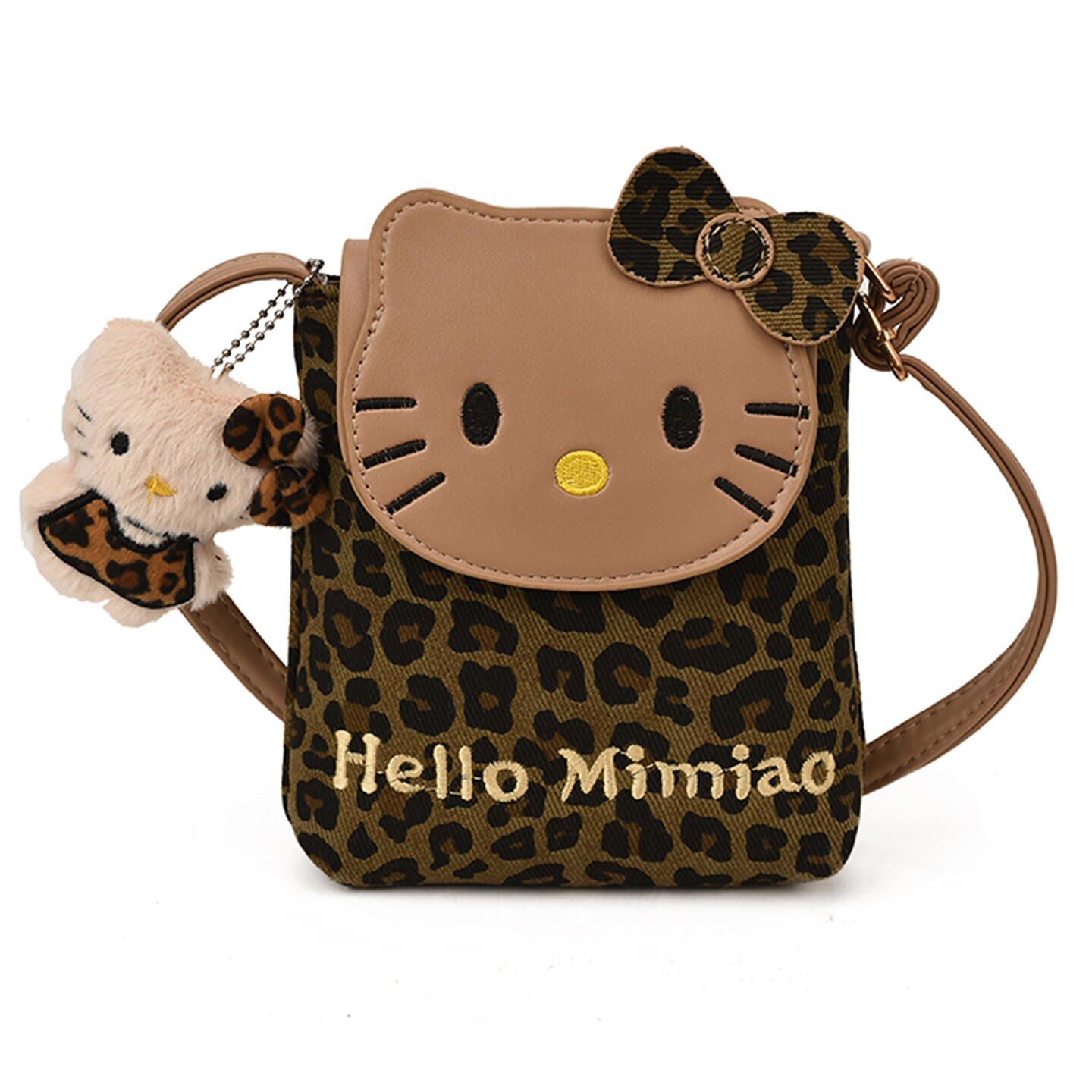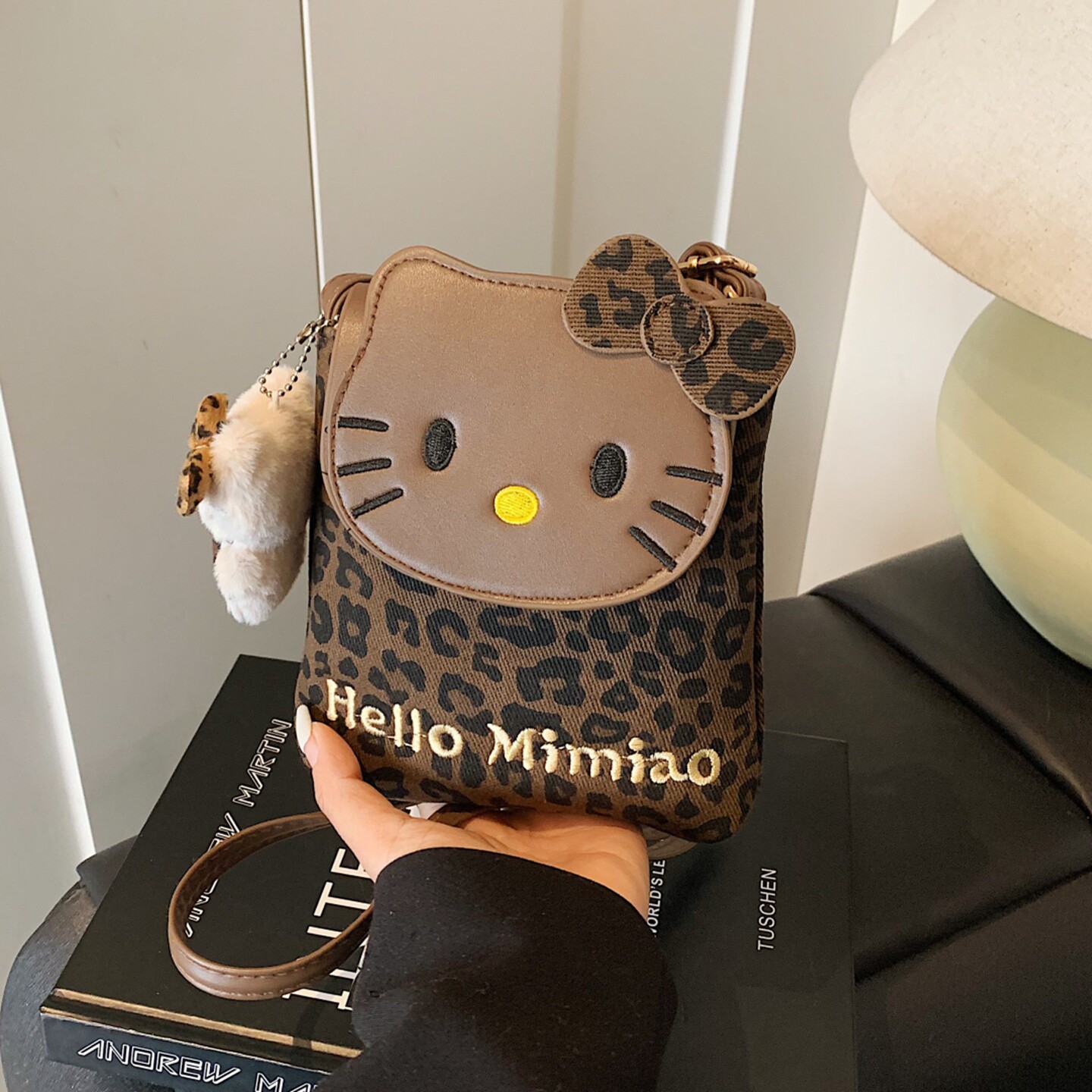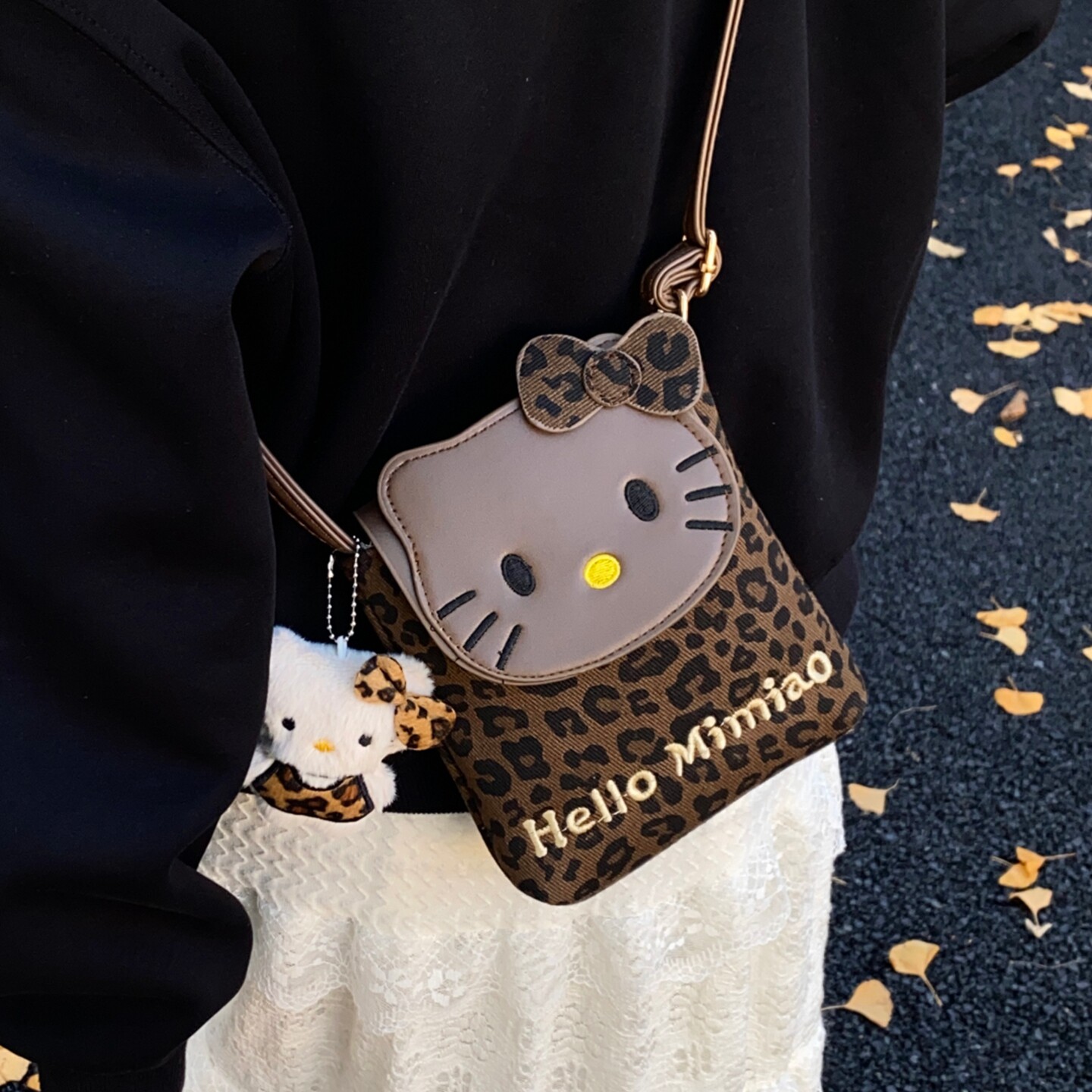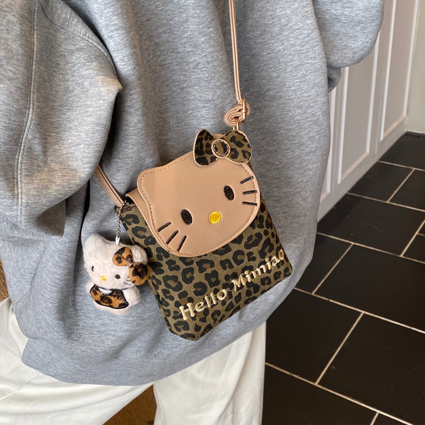 豹纹帆布小包包女士2026新款潮日系可爱卡通斜挎包精致迷你手机包