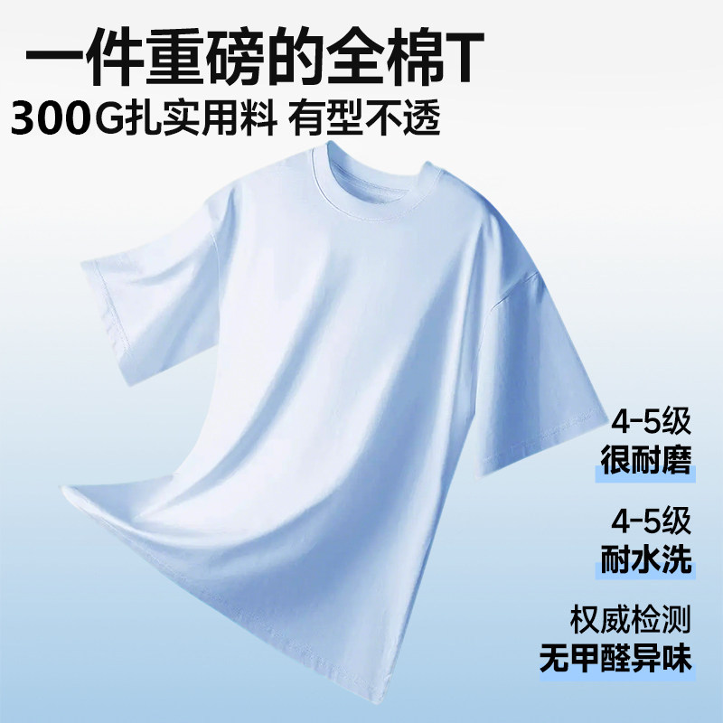 青少年女士男生2026新款高品质纯全棉短袖白色长绒棉t恤300g重磅