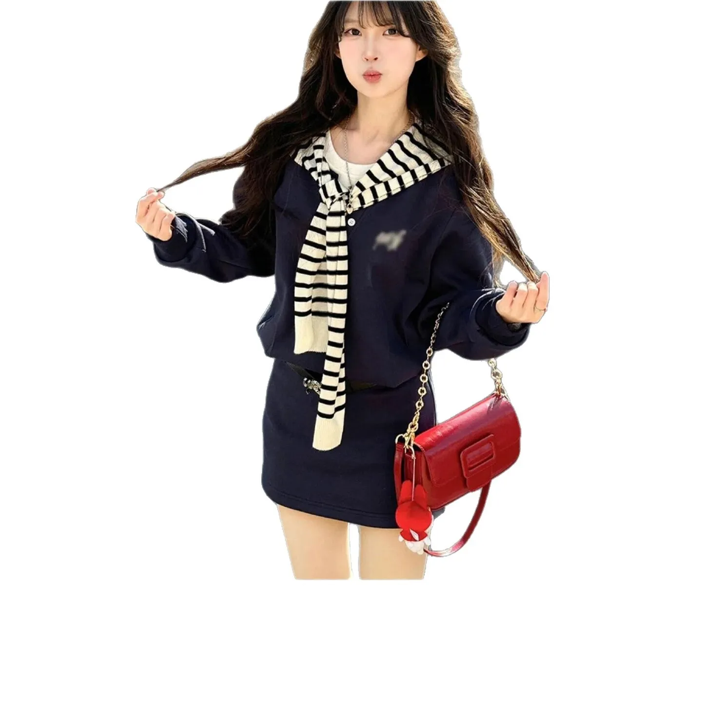 2026新款藏青色早春套装学院风女款运动卫衣裙子两件套韩系一整套