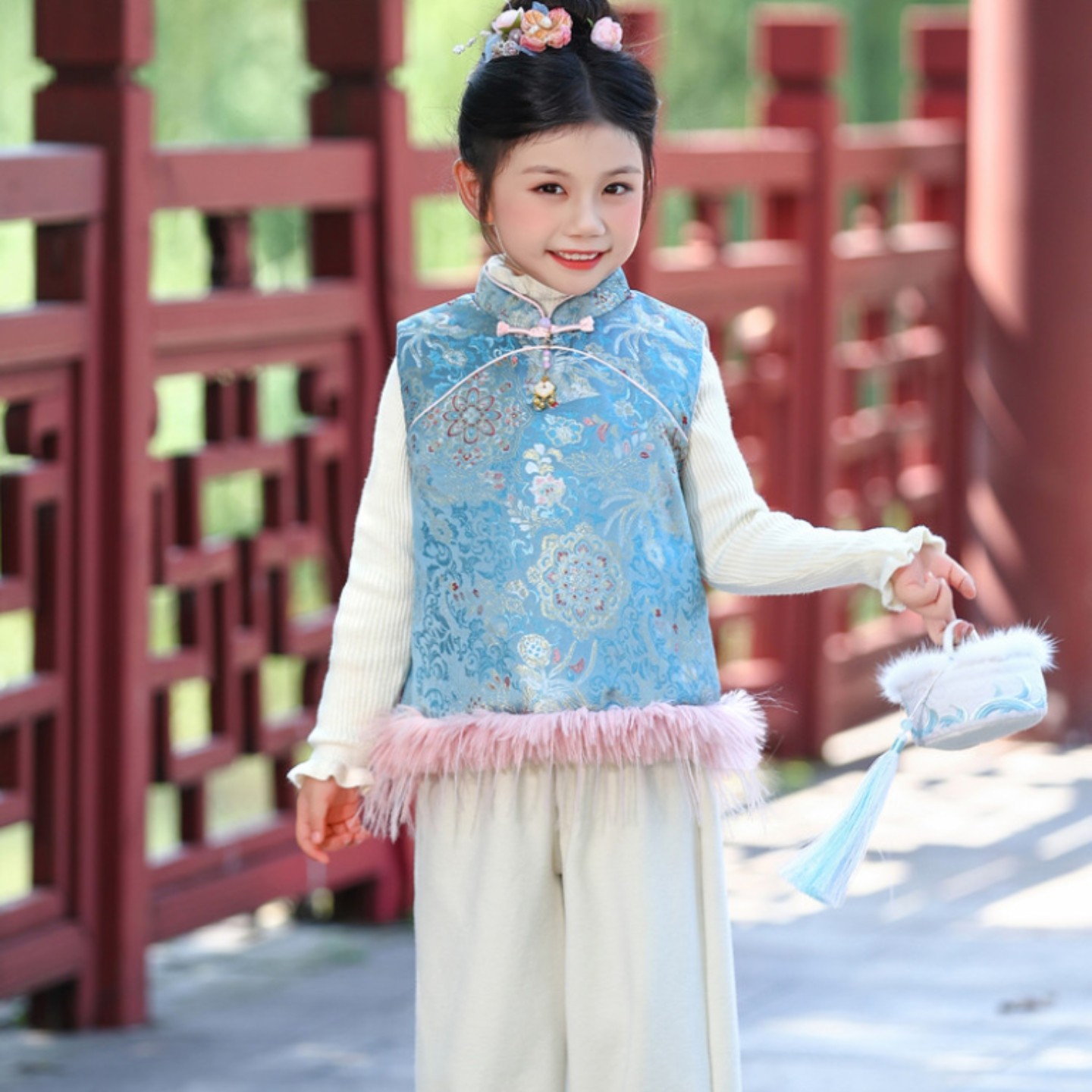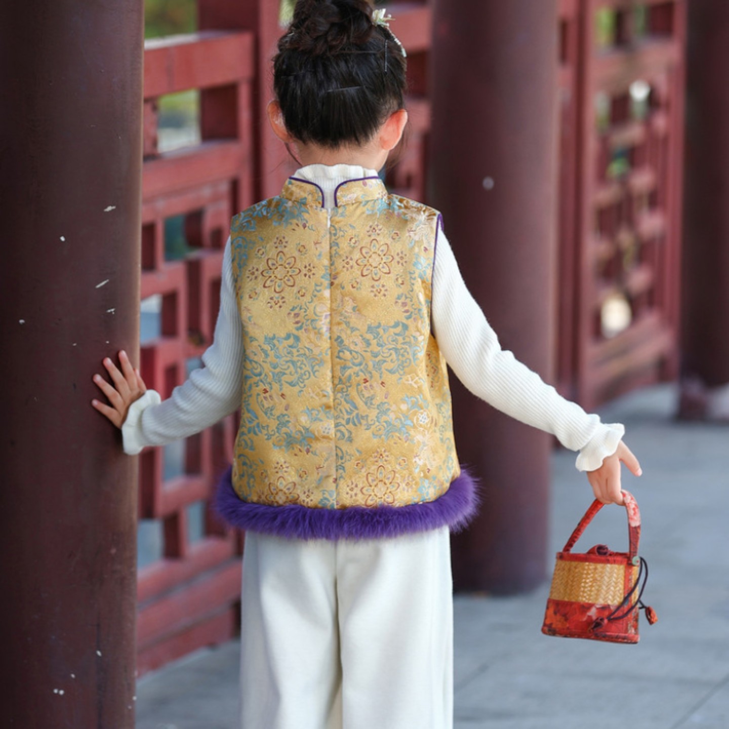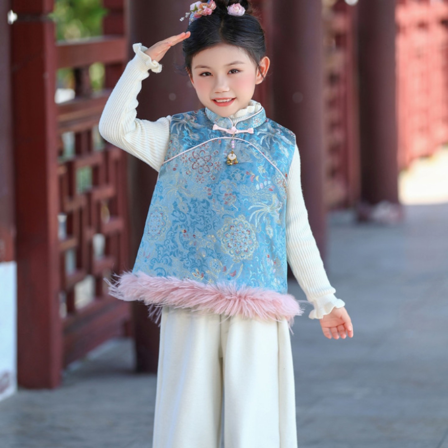 女童套装2025新款洋气时髦加绒加厚冬款新中式马甲裤子两件套国风