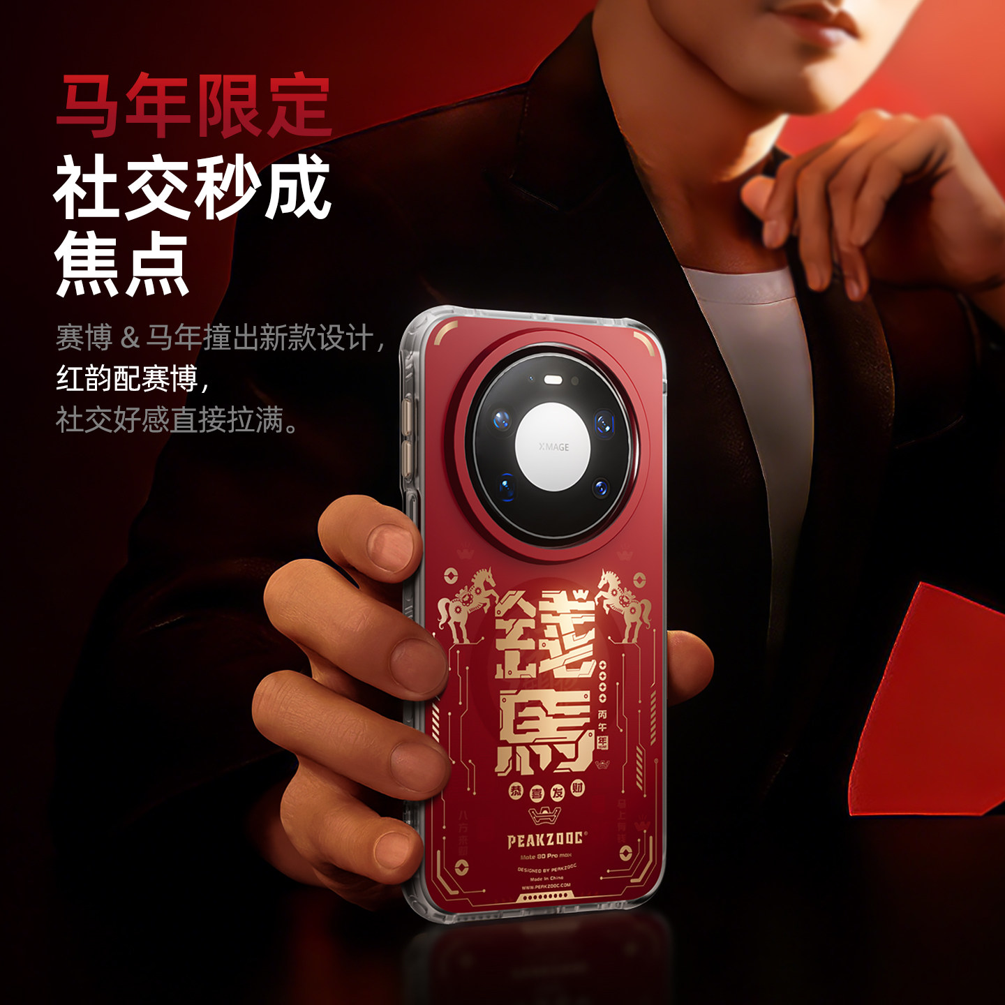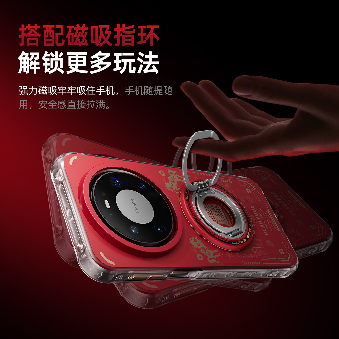 极造社适用华为Mate80ProMax手机壳2026新款磁吸外壳70Por+新年高级感X7超薄透明保护套红色mt60防摔全包x5x6