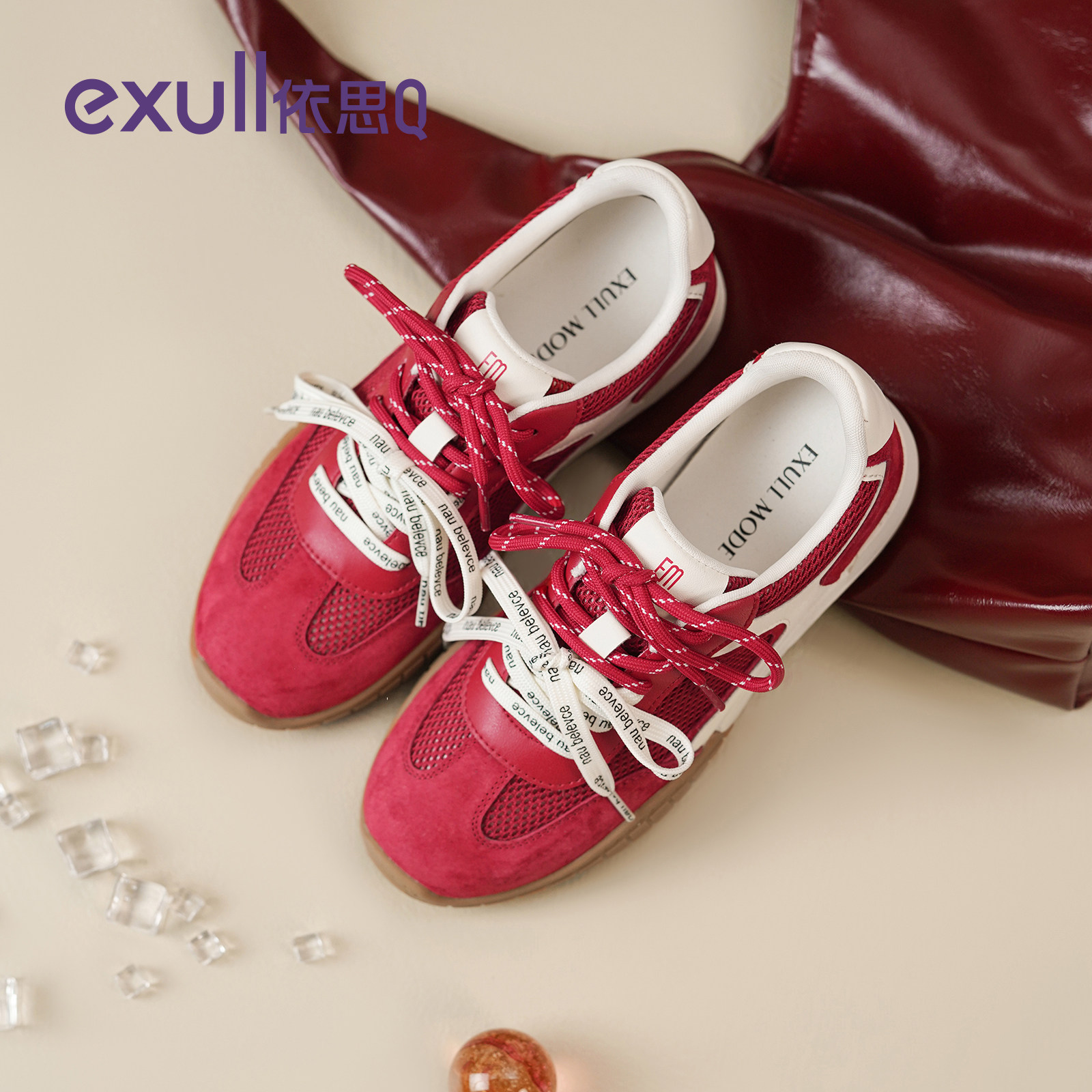 依思q红色德训鞋女款2026夏季新款透气女鞋复古内增高运动休闲鞋