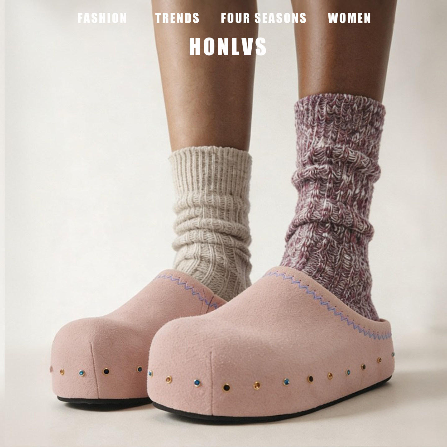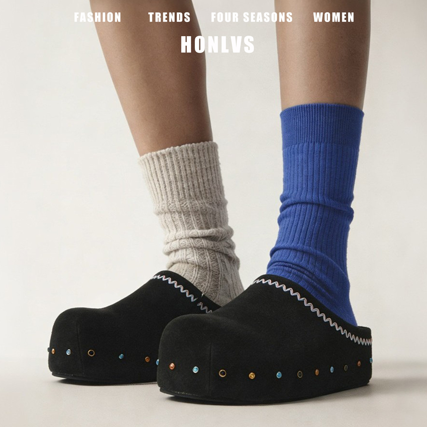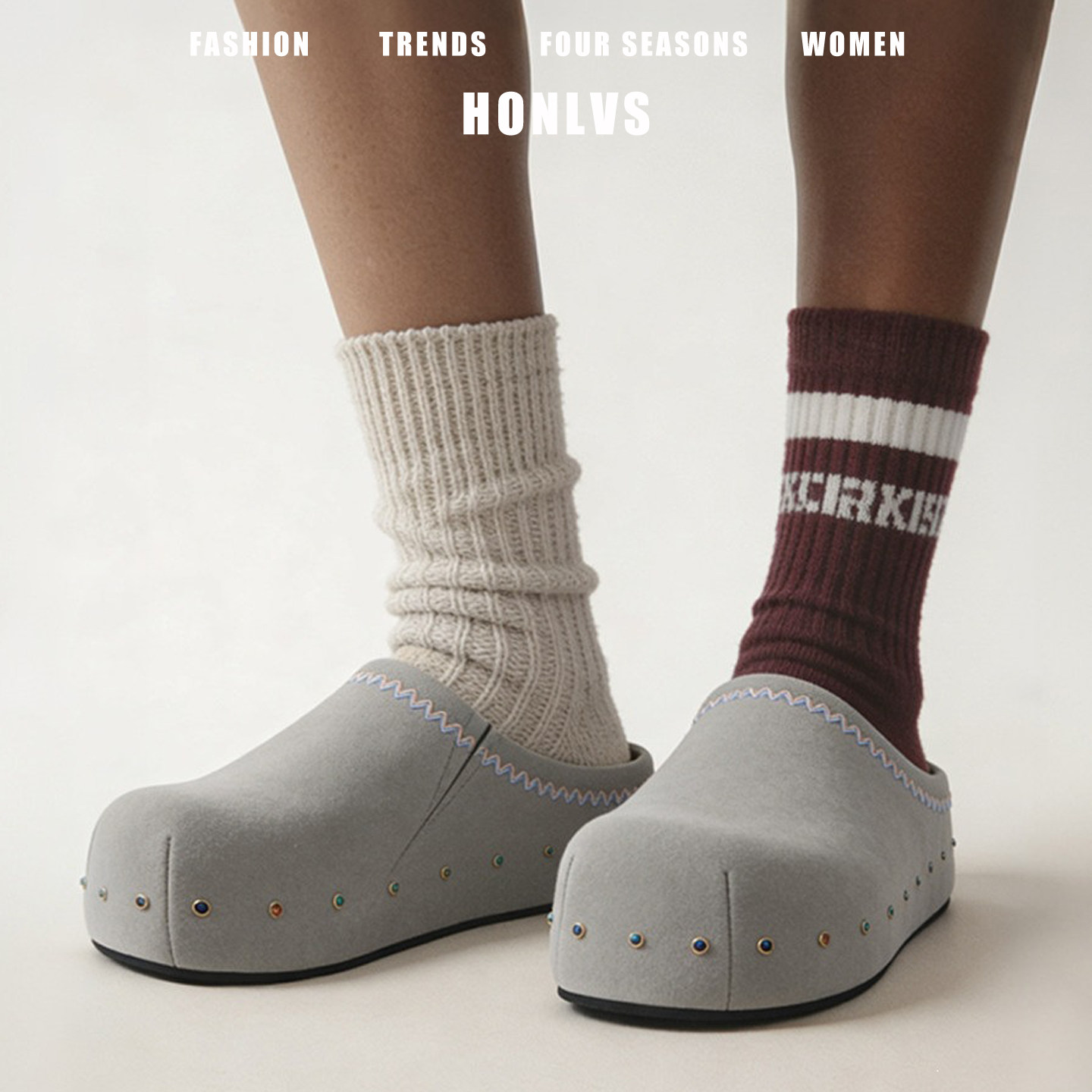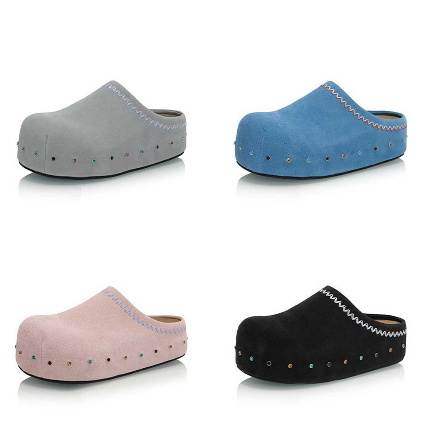 高级感钻石刺绣勃肯鞋女夏季外穿厚底内增高一脚蹬真皮包头半拖鞋