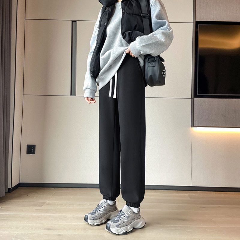 青少年高中初中女生秋冬加绒加厚双面绒防风裤子束腿休闲运动卫裤