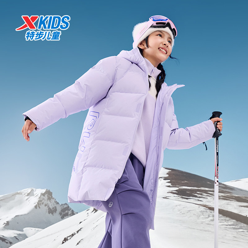 特步童装儿童运动羽绒服男童秋冬季新款正品休闲保暖女童连帽外套