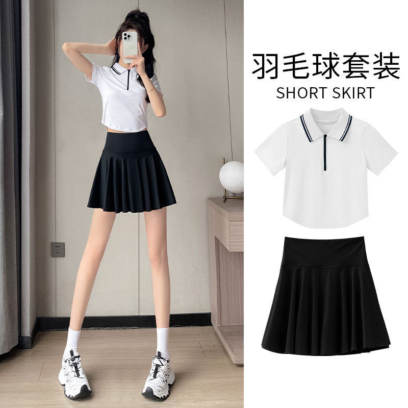 网球运动套装女羽毛球服跑步polo领学院风上衣绝美半身裙休闲短裙