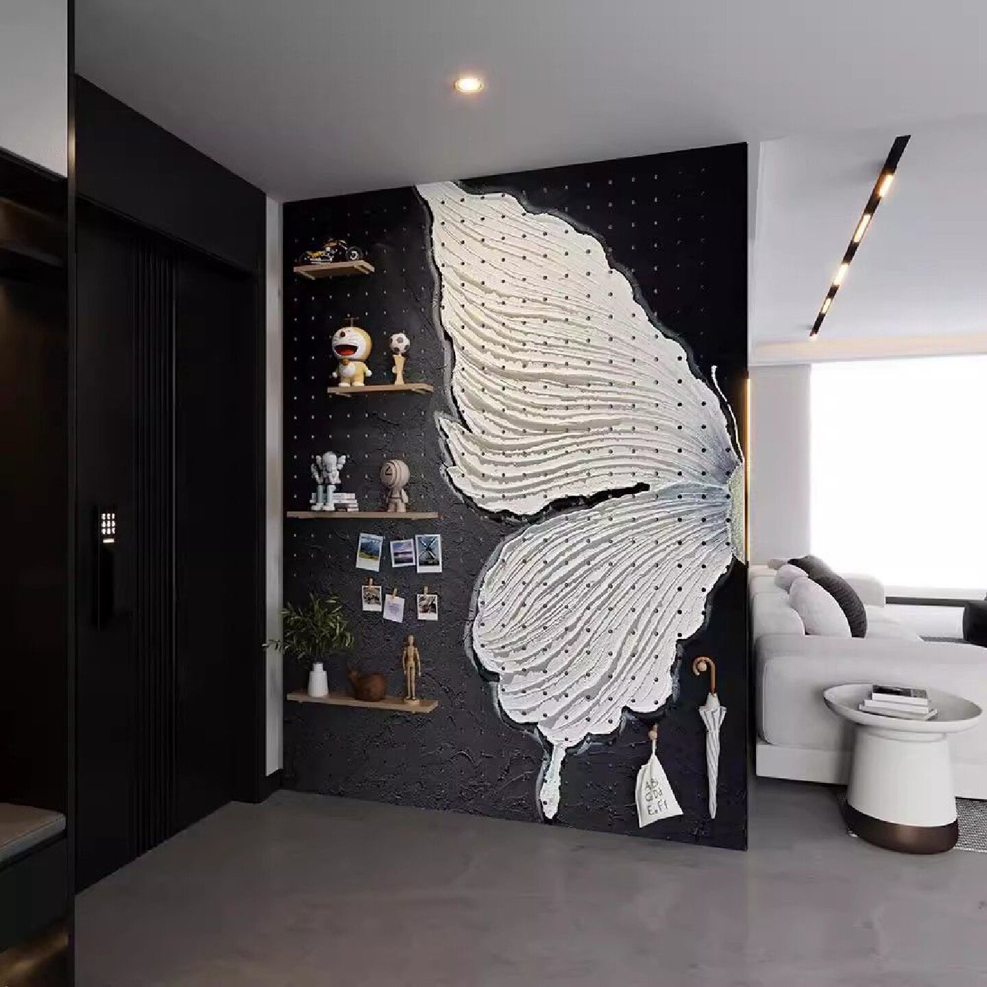 定制洞洞板墙面背景墙黑白蝴蝶客厅高级感入户门置物架收纳洞洞板