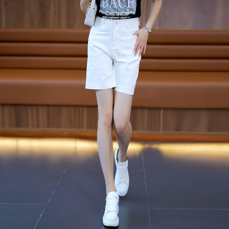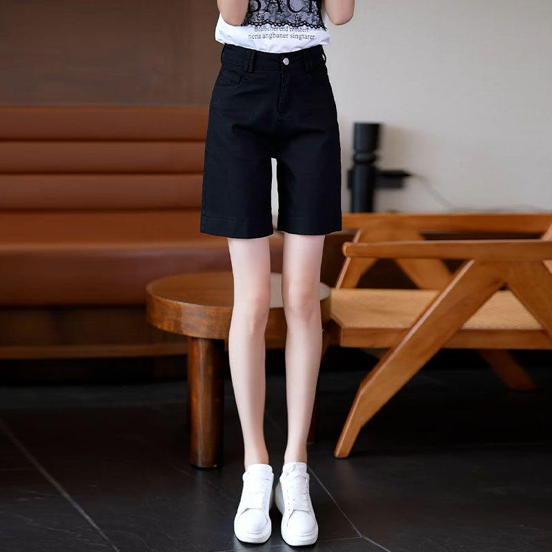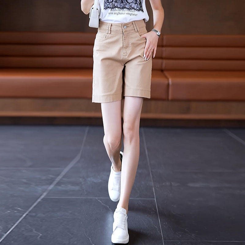 粉色纯棉牛仔短裤女款夏季2026新款薄款直筒休闲宽松阔腿五分裤子