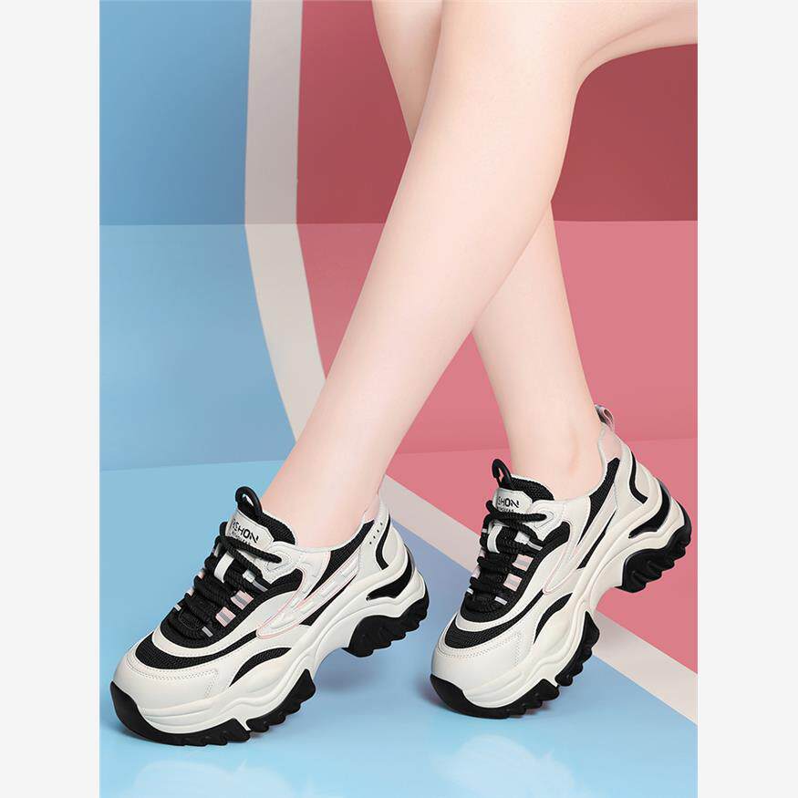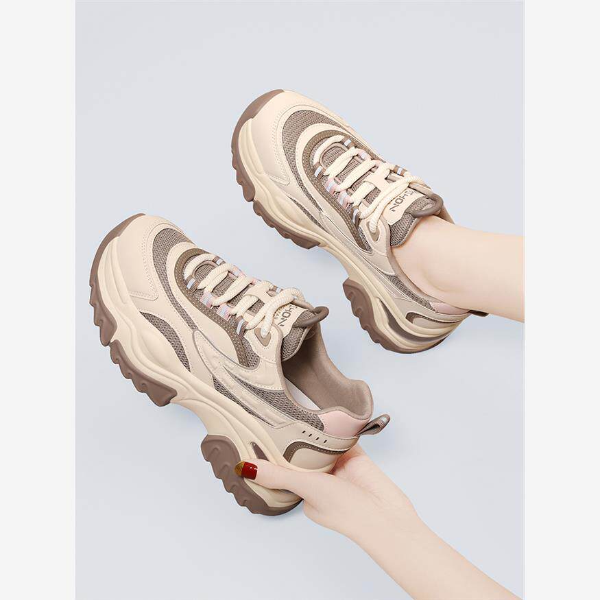显脚小老爹鞋女款2025新款春秋夏季轻便厚底增高软底休闲旅游运动