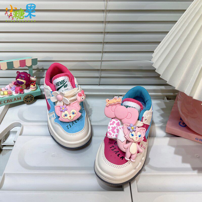 女童多巴胺鸳鸯鞋儿童春季爆款运动鞋皮面防水防滑小女孩春款板鞋