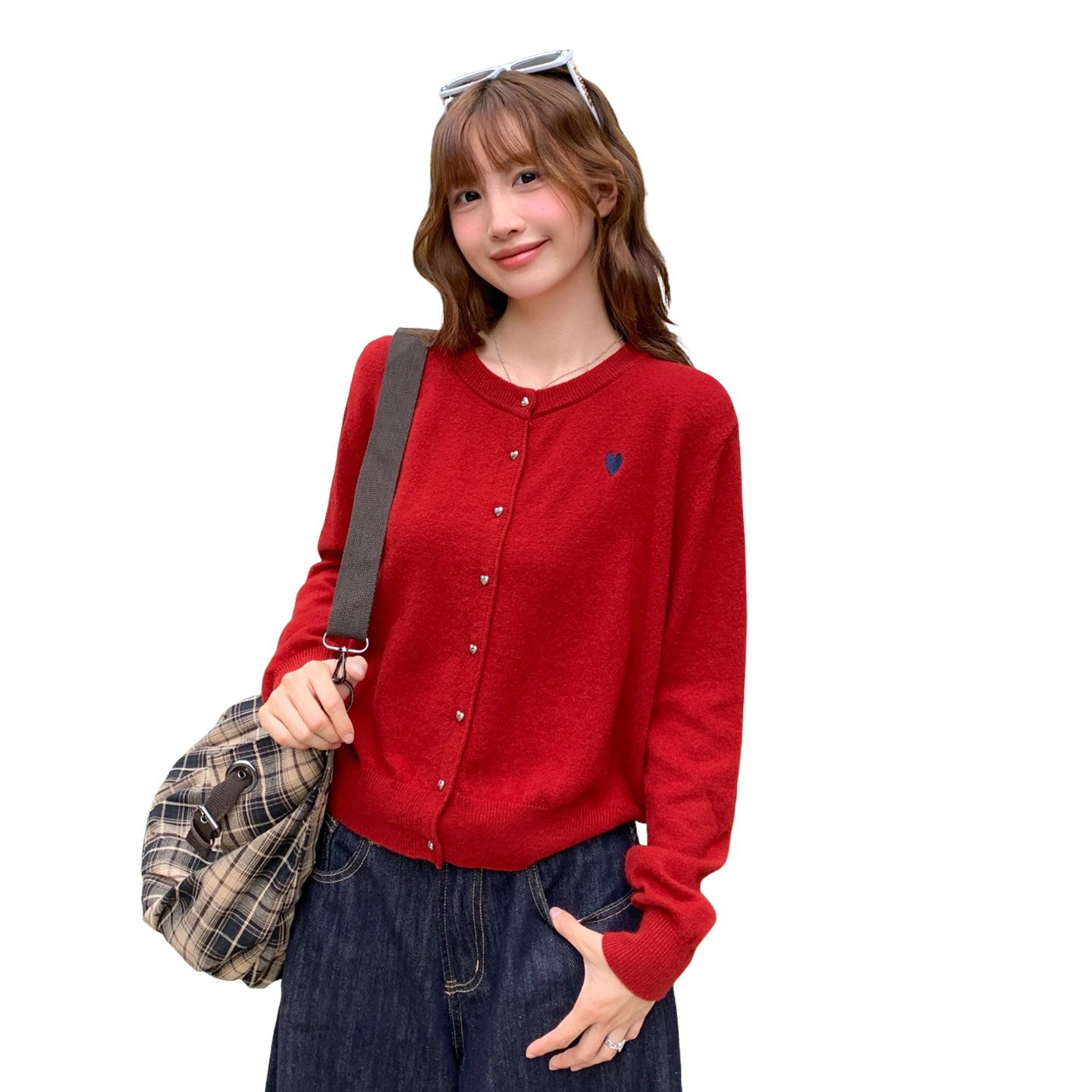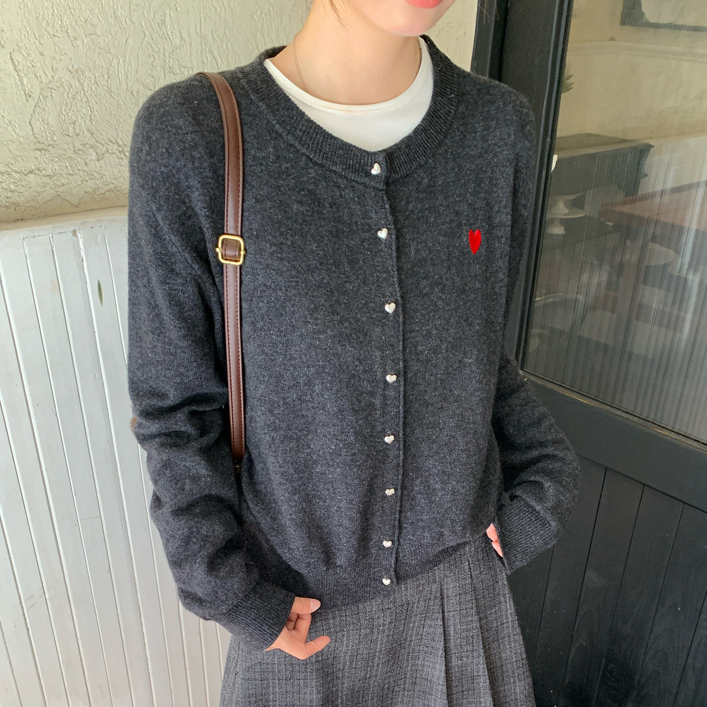 龙妹家灰色针织开衫毛衣外套女款外穿2026早秋新款韩系氛围感上衣
