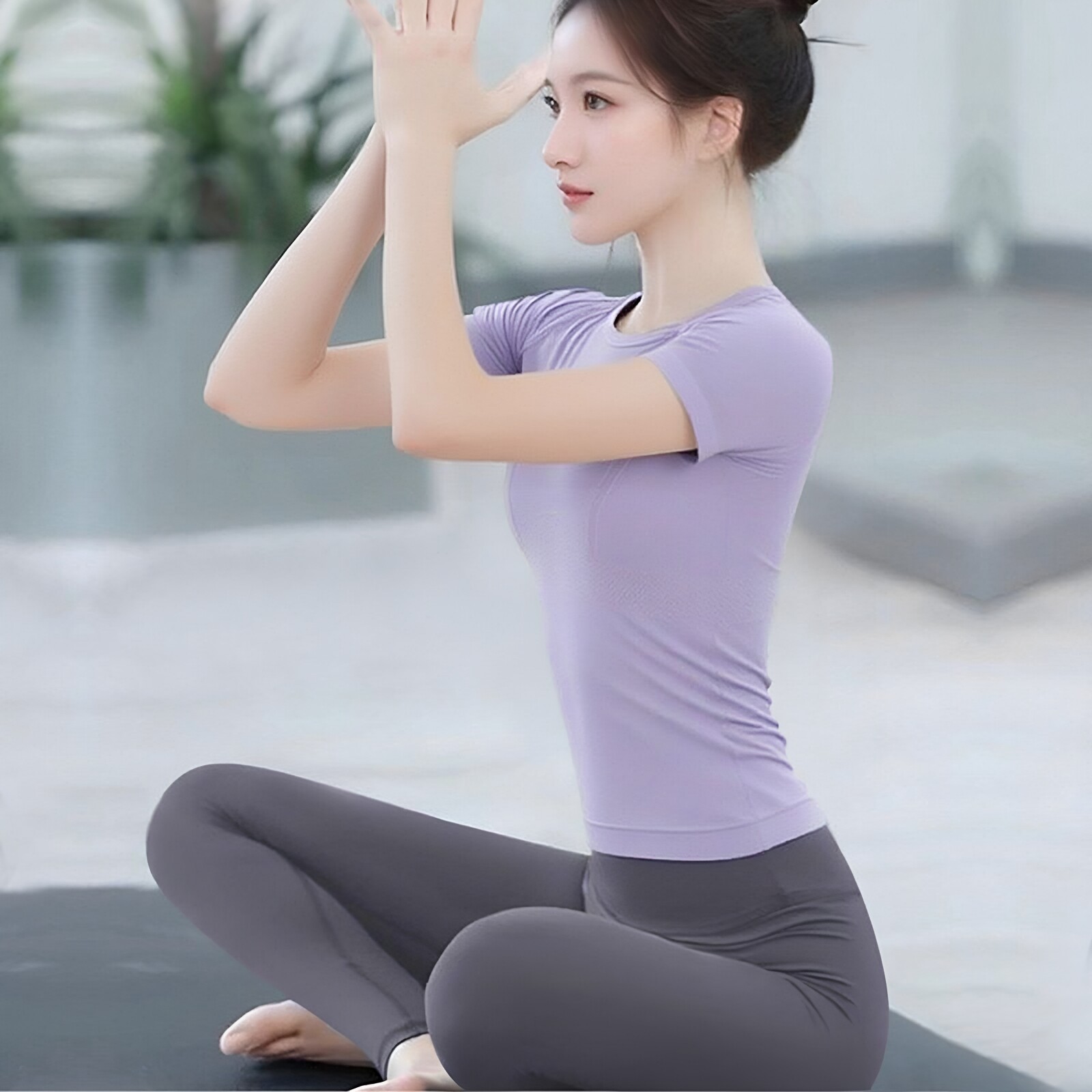 小蛮腰短袖运动上衣女夏季跑步速干显白收腰显瘦普拉提瑜伽服套装