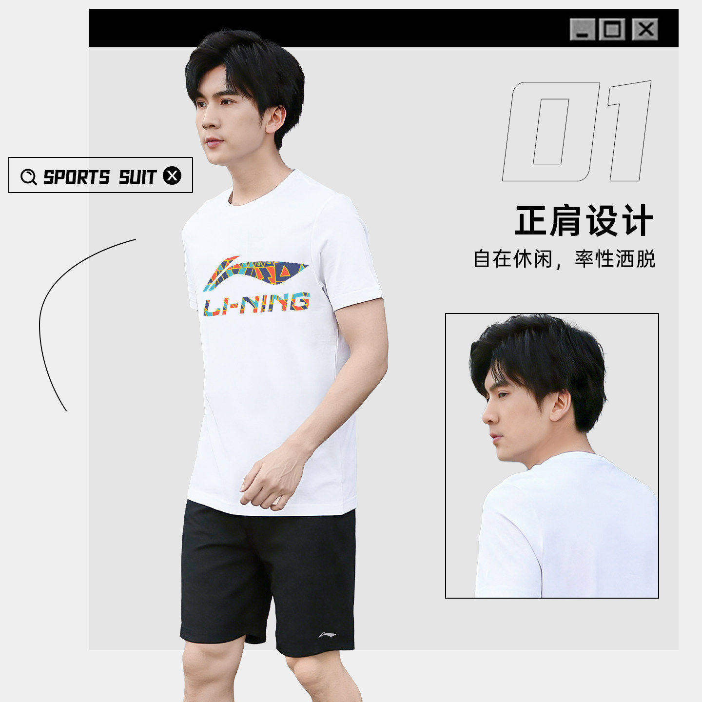 李宁运动套装男夏季短袖T恤纯棉速干短裤跑步羽毛球服潮流青少年