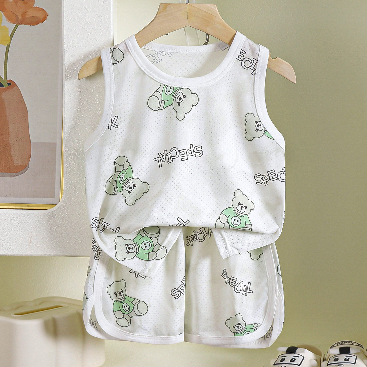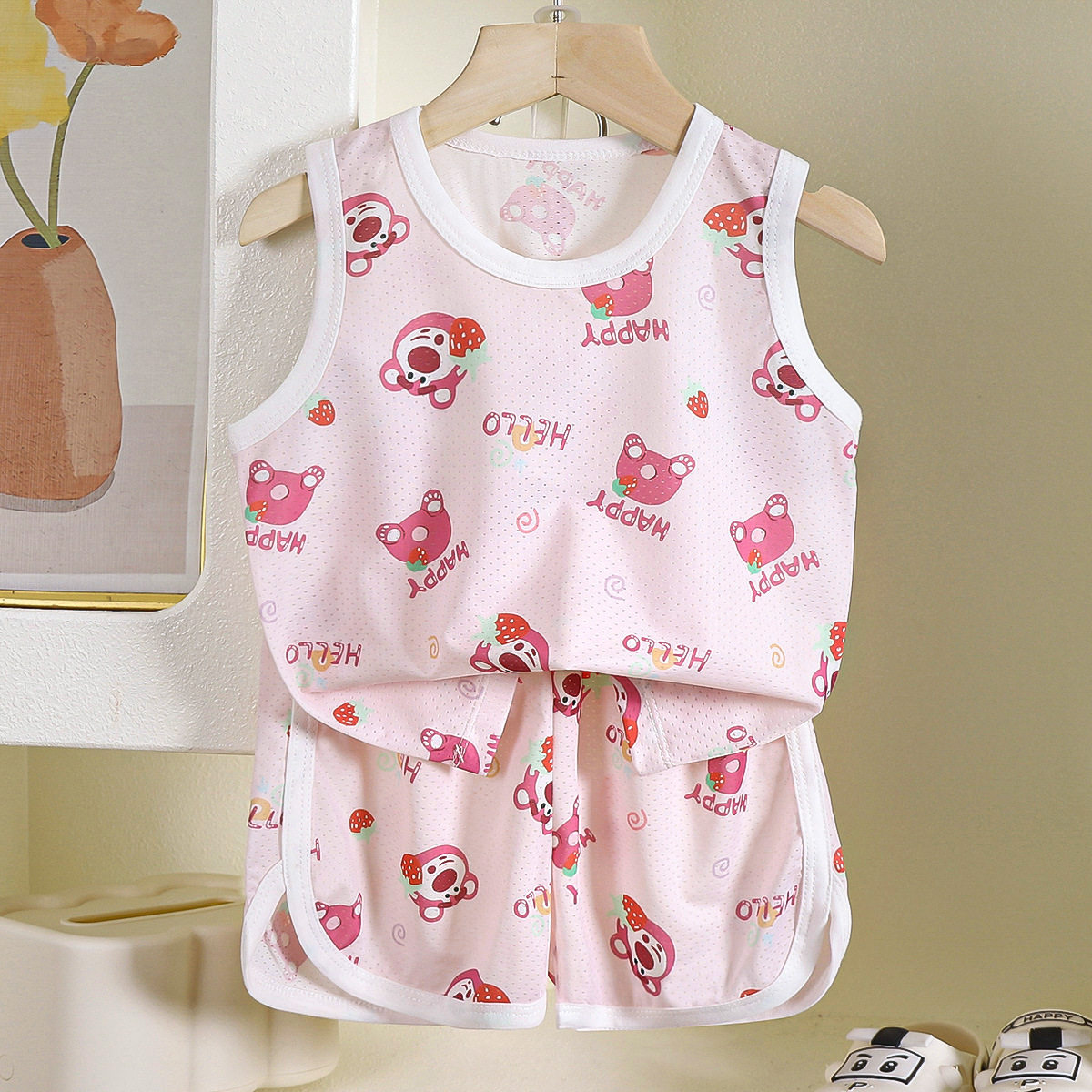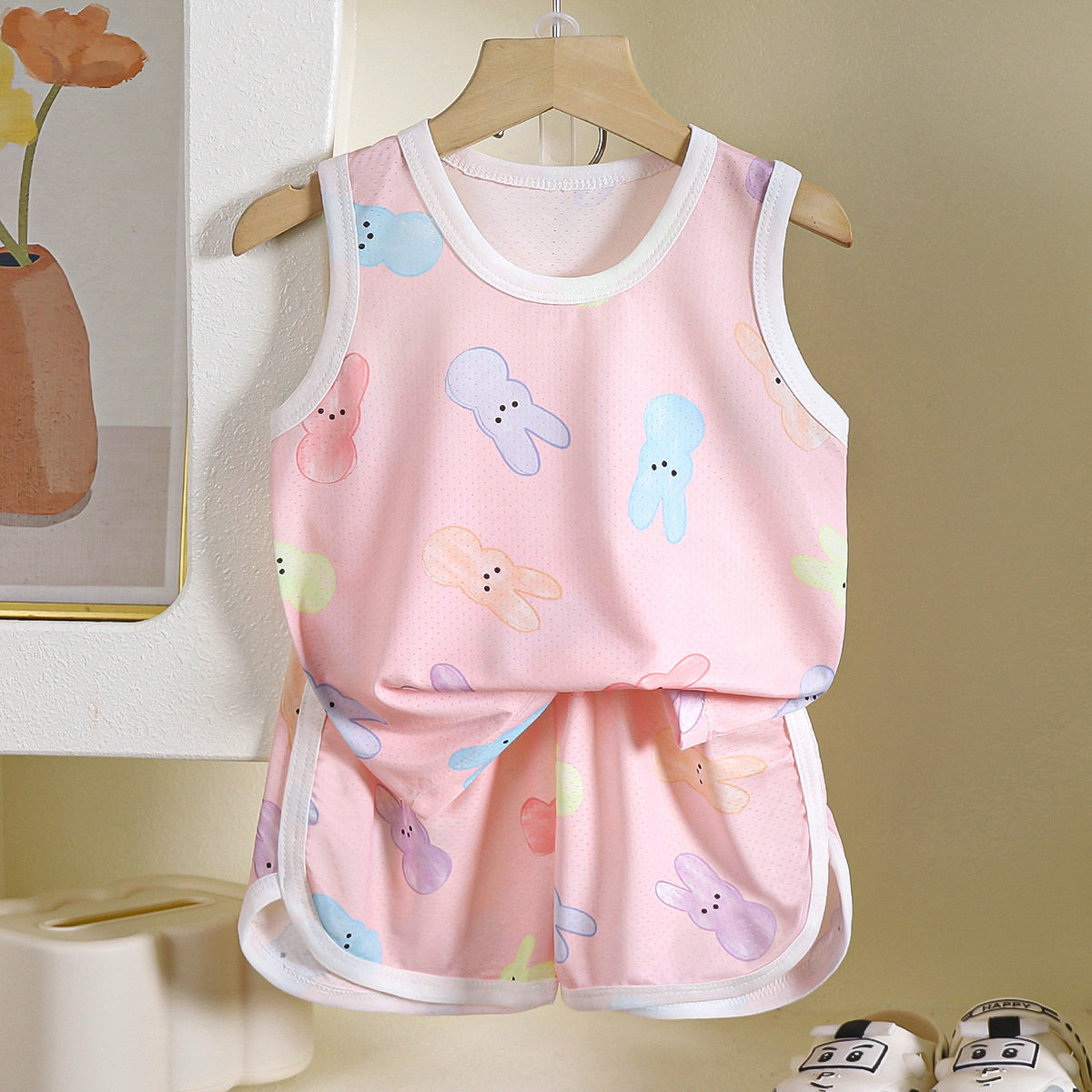儿童冰丝背心套装夏季男女童无袖短裤网孔洋气韩版运动休闲两件套