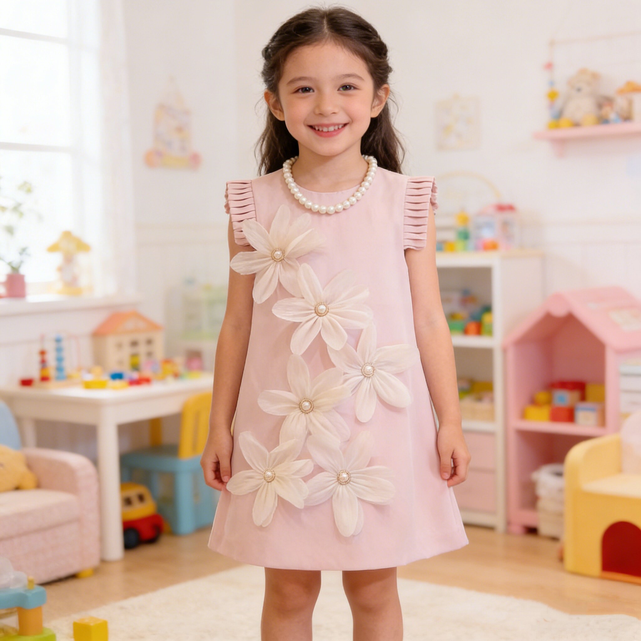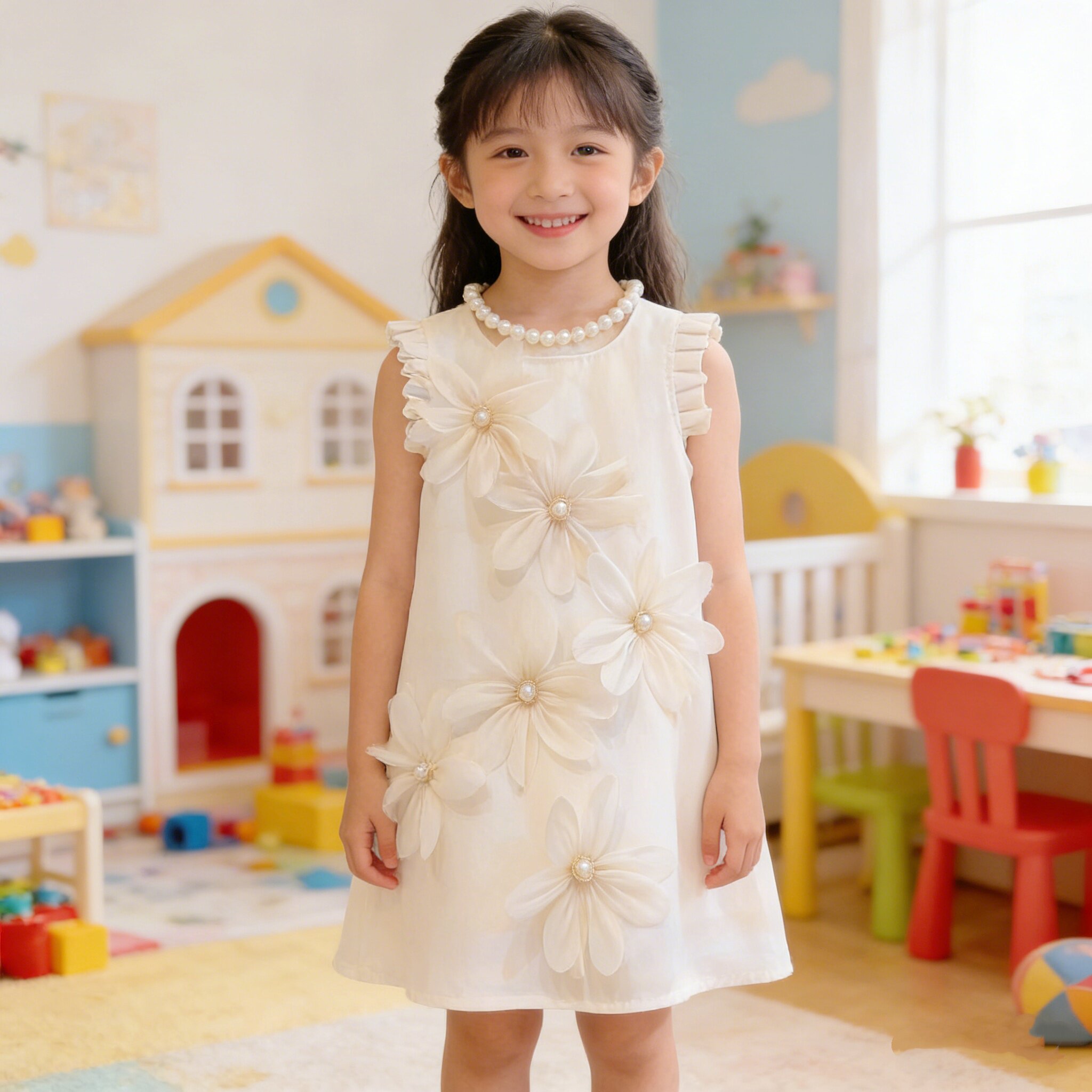 5夏装4女童6高级感立体花朵连衣裙7儿童装8小女孩3岁无袖公主裙子