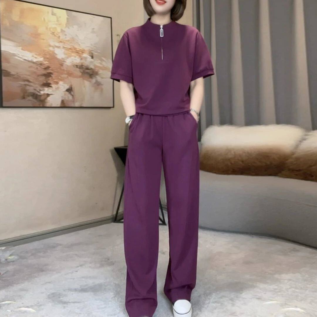 夏季短袖运动套装女2026时尚新款宽松年轻休闲妈妈卫衣立领两件套