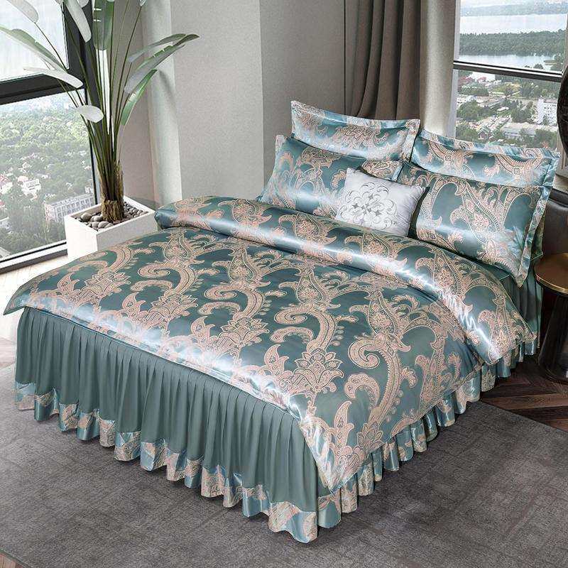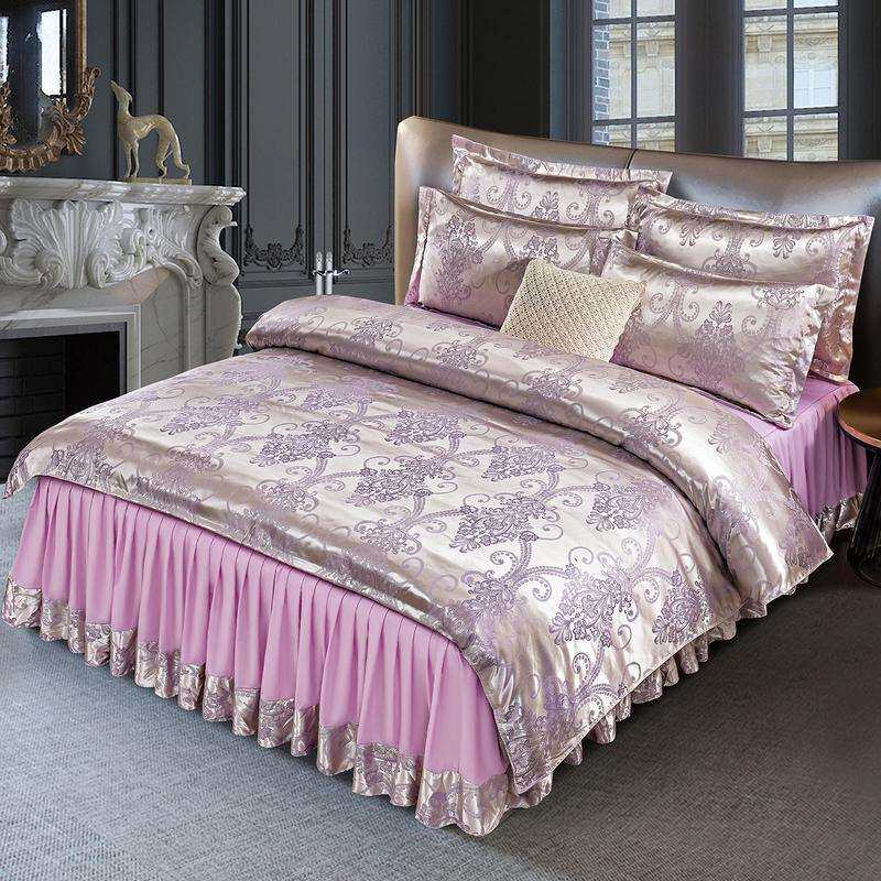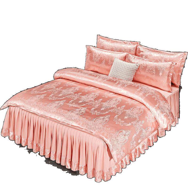欧式提花床裙款四件套床单被套夏季冰丝单双人婚庆床上用品三件套
