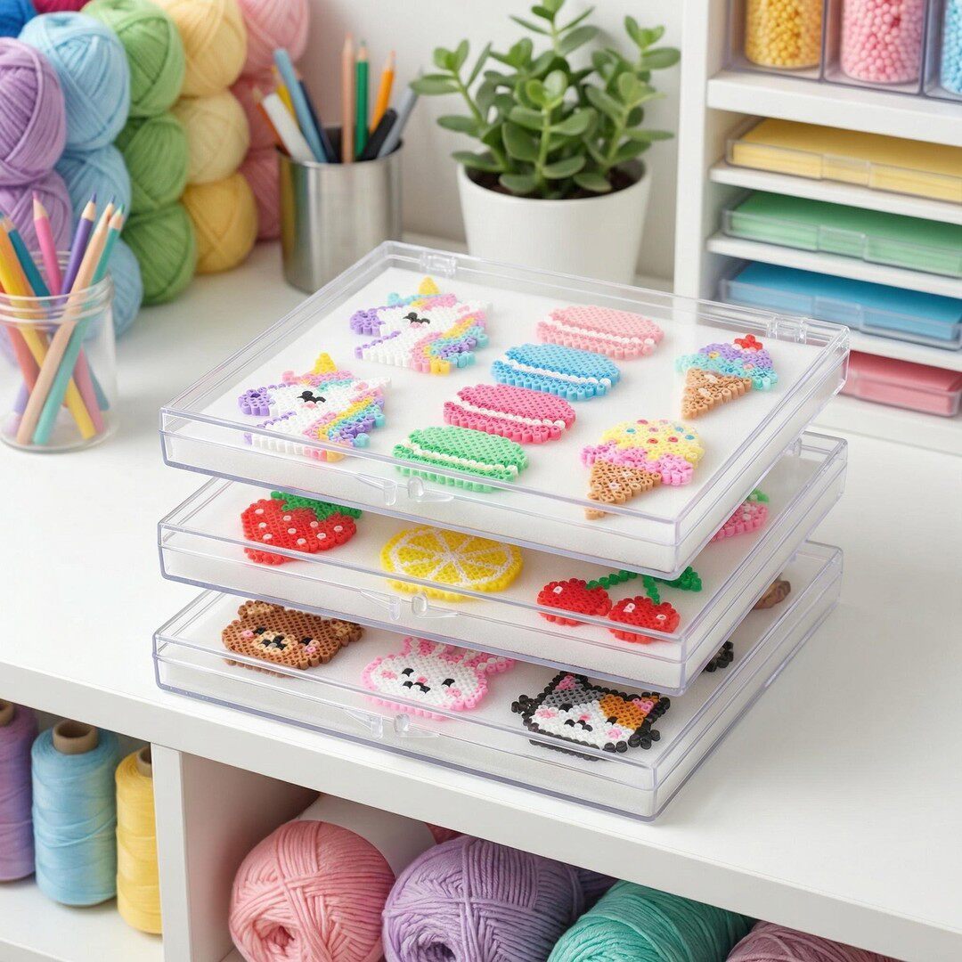 拼豆豆收纳盒暂停盒防撒豆保护免烫拼豆半成品展示盒狂摇不撒豆