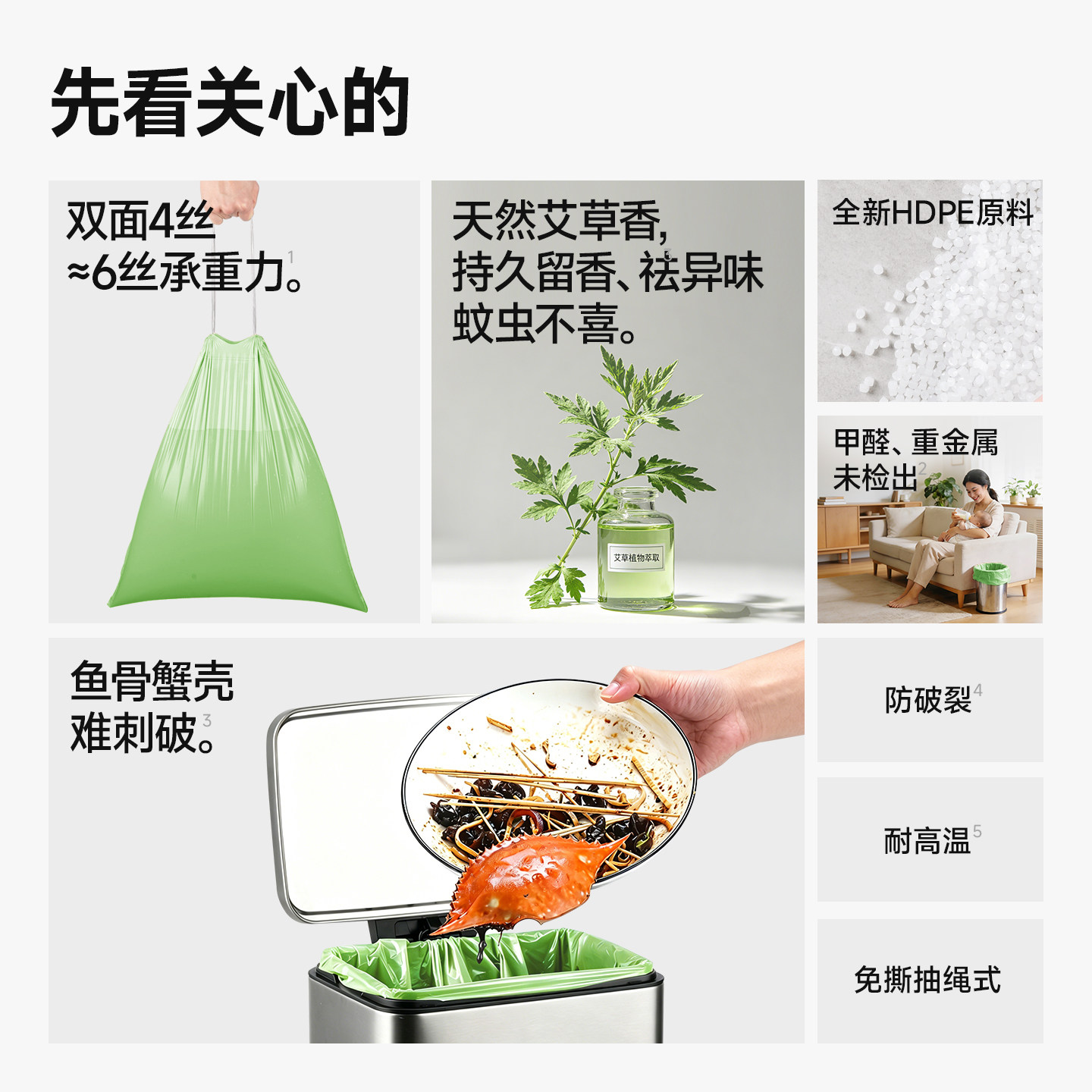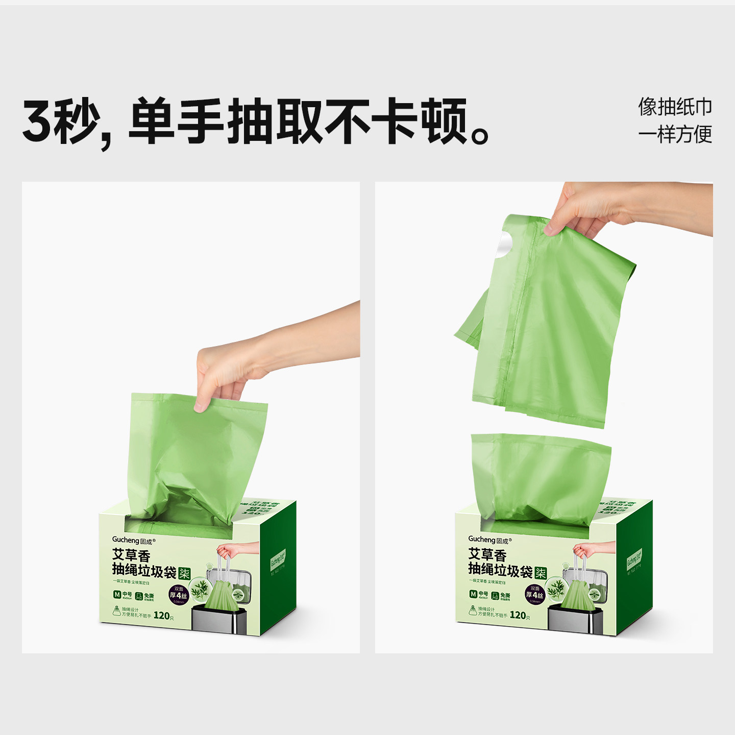 固成艾草驱防臭蚊虫免撕抽绳垃圾袋加厚家用手提式厨房专用塑料袋