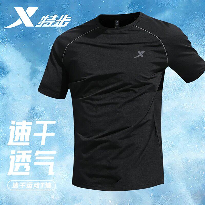 特步速干短袖T恤男夏季透气官方旗舰店正品灰色跑步健身运动上衣