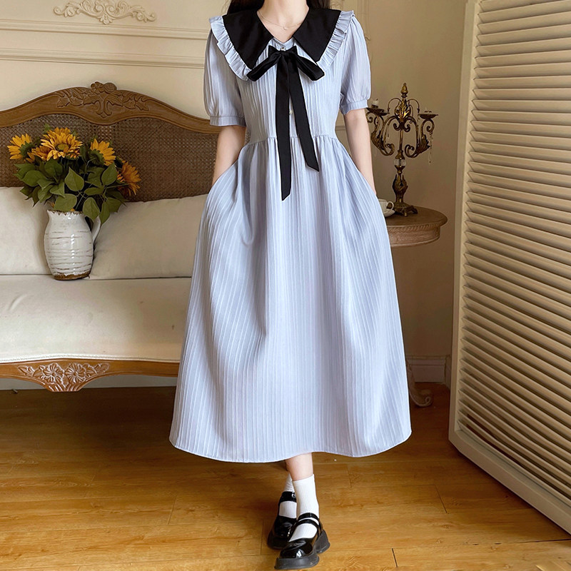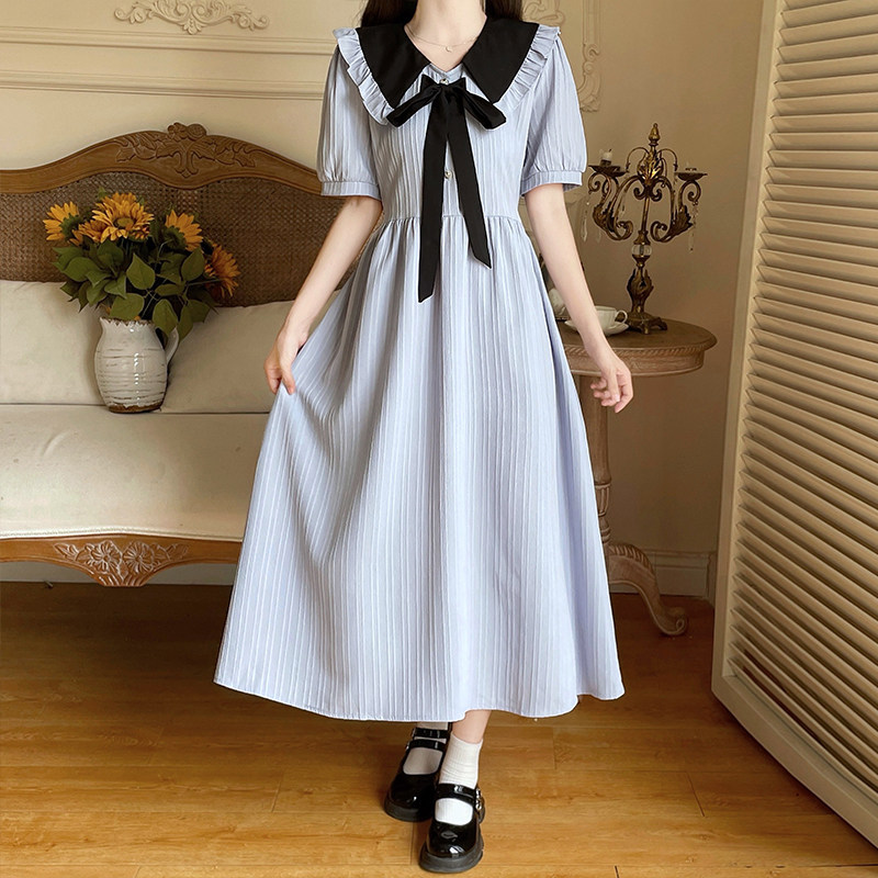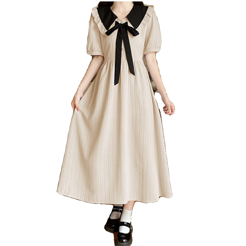 女大童夏季连衣裙初中生小清新娃娃领12-15岁女孩甜美学院风裙子