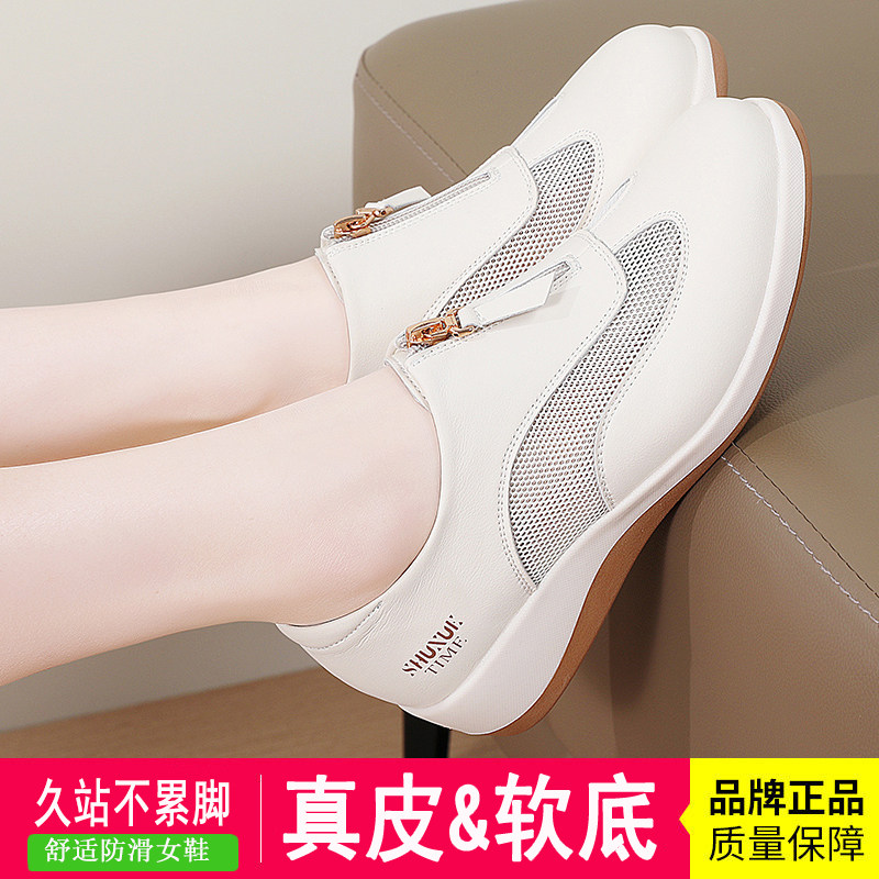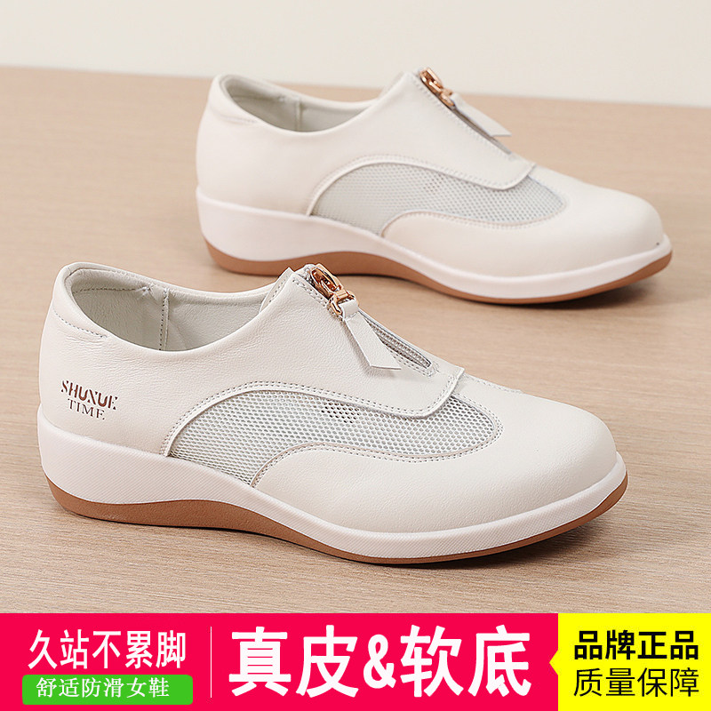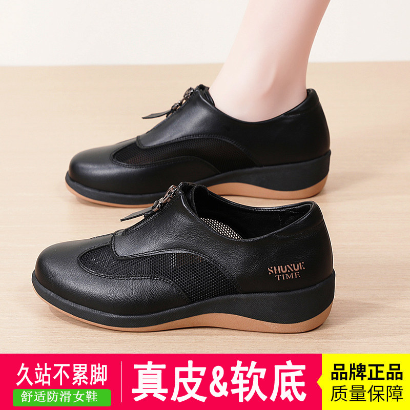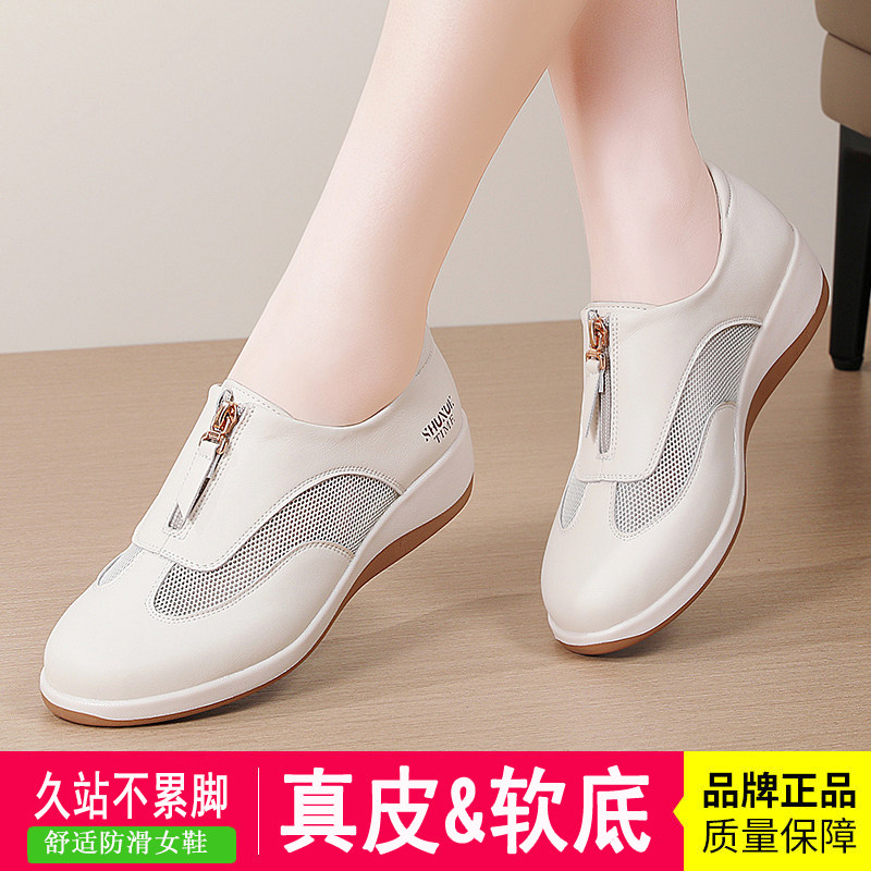 真皮透气不闷脚女鞋妈妈鞋中老年舒适不累脚休闲鞋女款2025新款