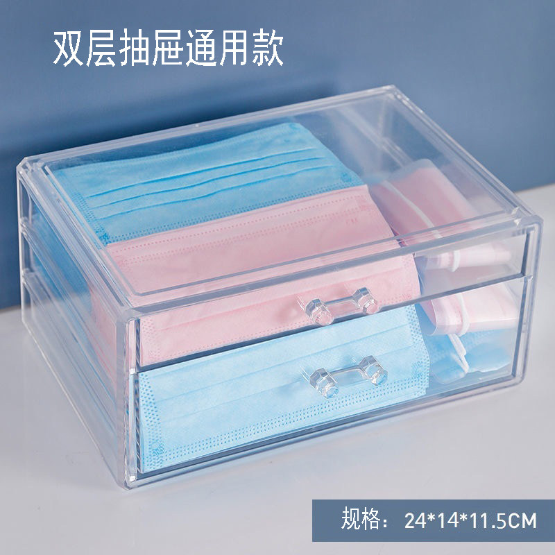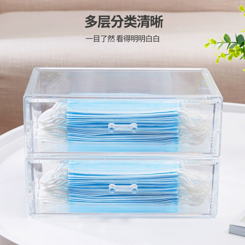 大容量口罩收纳盒l抽屉桌面亚克力整理盒防尘收纳箱全透明加厚包