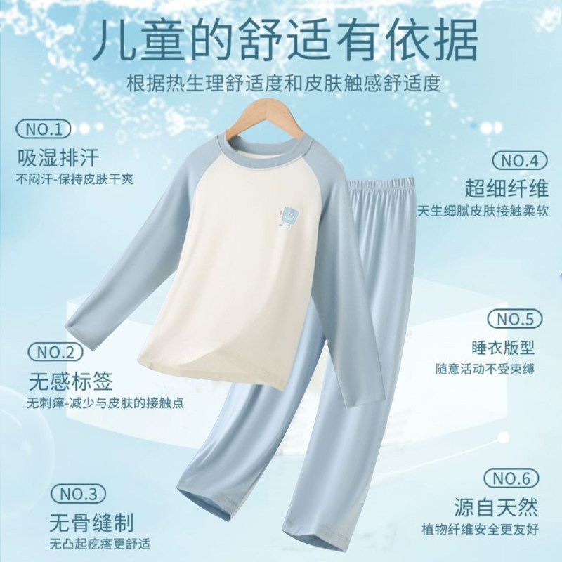 长袖长裤儿童家居服套装夏季薄莫代尔青少年空调服男女童学生睡衣