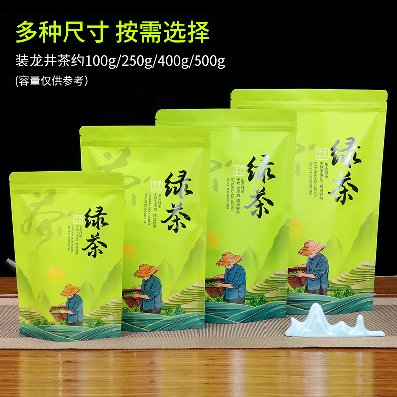 茶叶包装袋子自封袋通用牛皮纸绿茶密封袋子二两半斤茶叶礼品袋