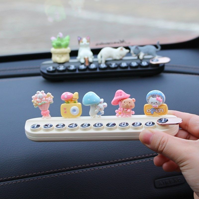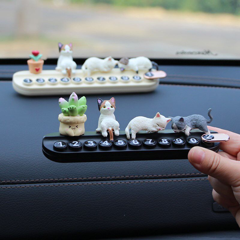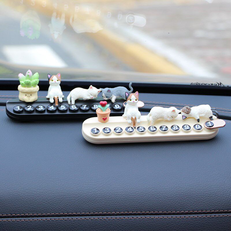 创意汽车临时停车挪车号码牌车载摆件可爱小猫咪车内移车电话卡女