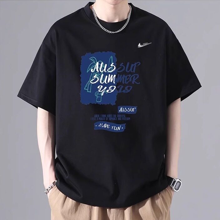 耐克顿纯棉短袖T恤男款夏季潮牌宽松半袖青少年休闲百搭透气上衣