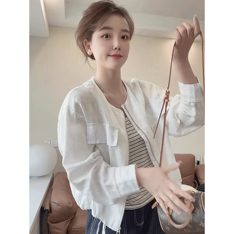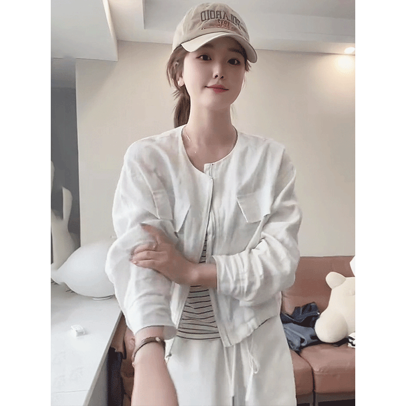 亚麻开衫短款拉链外套女2026新款爆款春装女款休闲百搭薄款上衣女