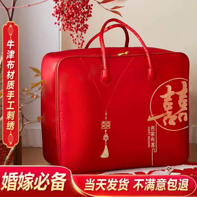 结婚喜被收纳袋婚庆四件套袋子红色陪嫁被子包装袋牛津布袋整理袋