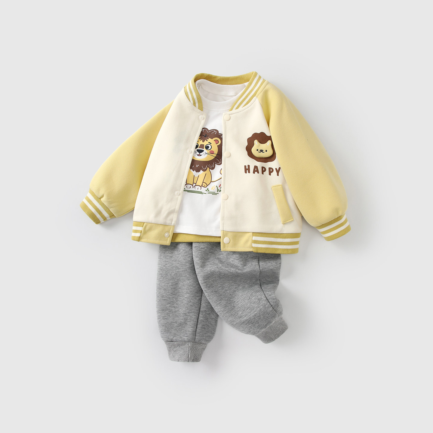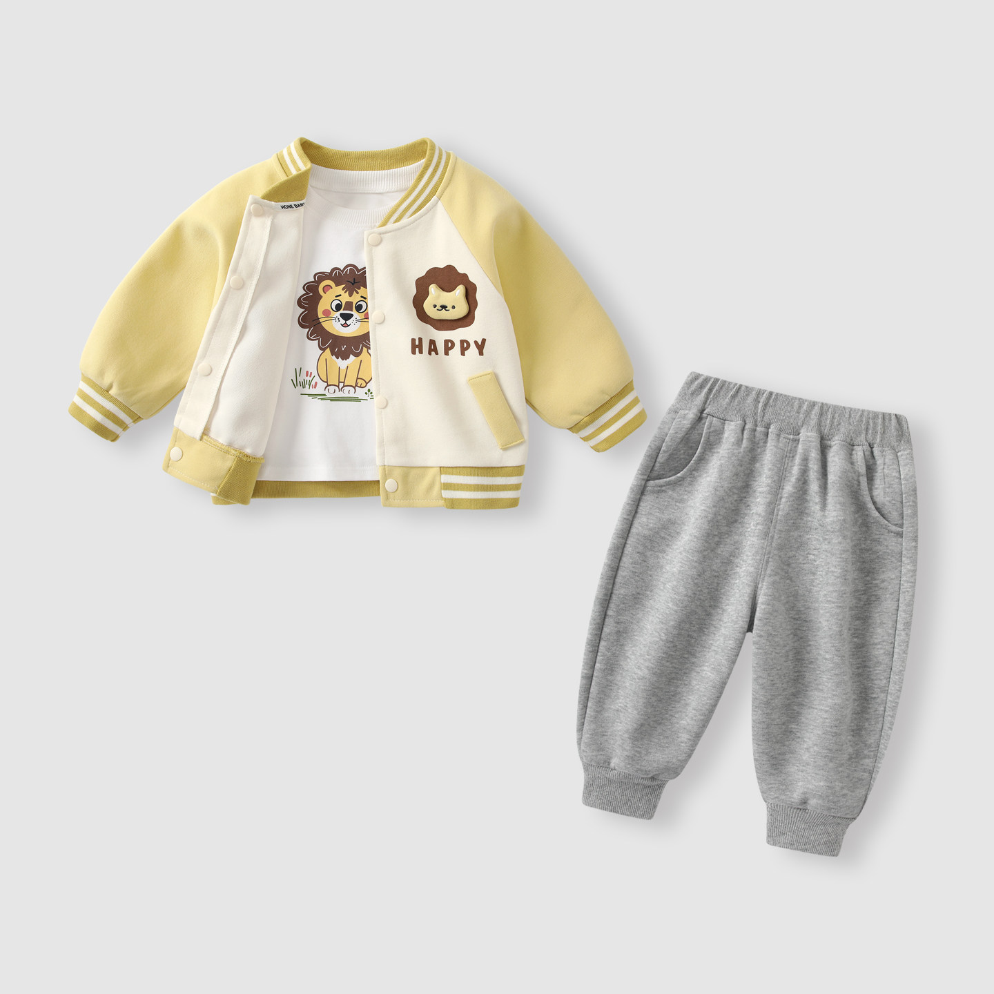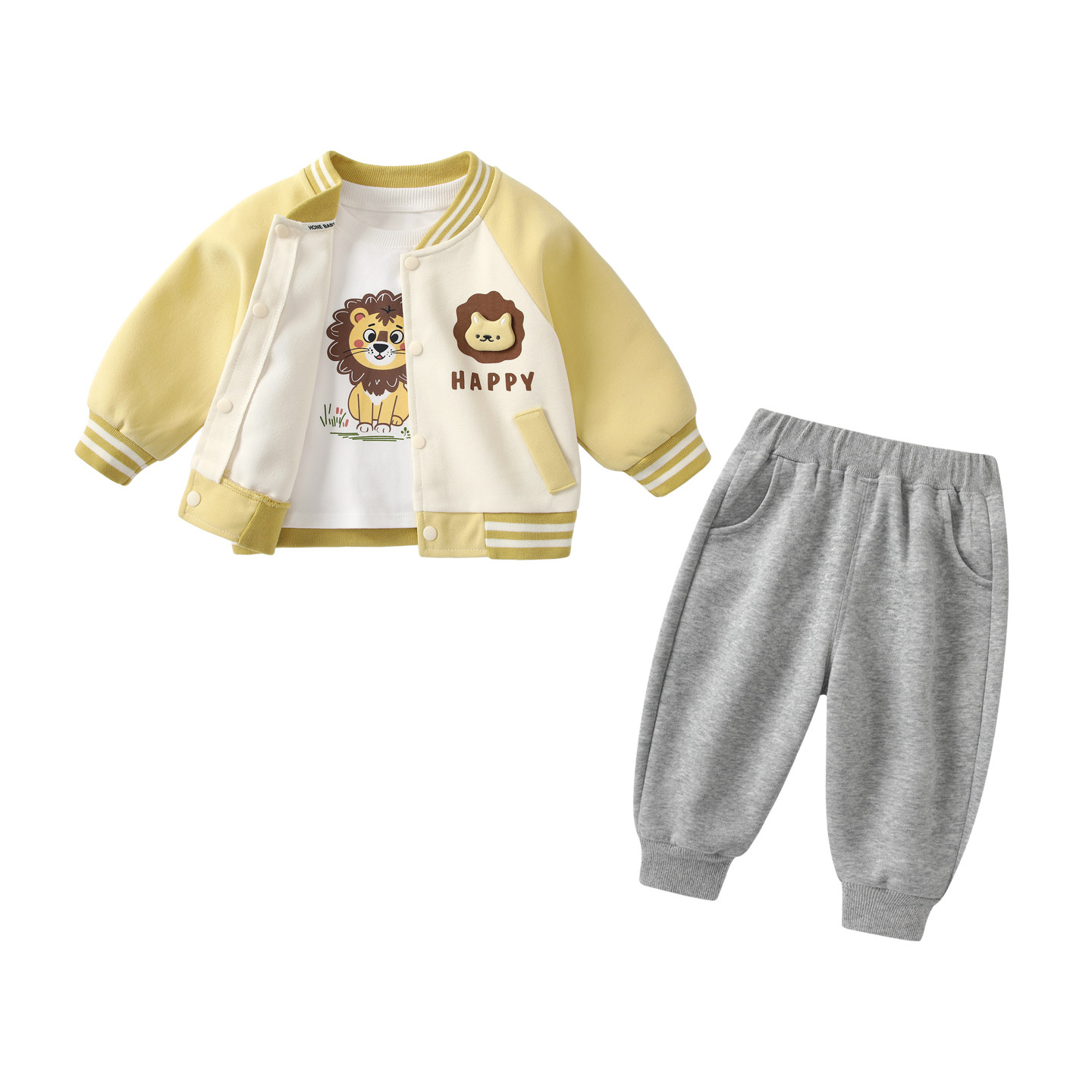 男宝宝套装春装新款男童连帽卫衣分体三件套婴儿春秋洋气外穿衣服