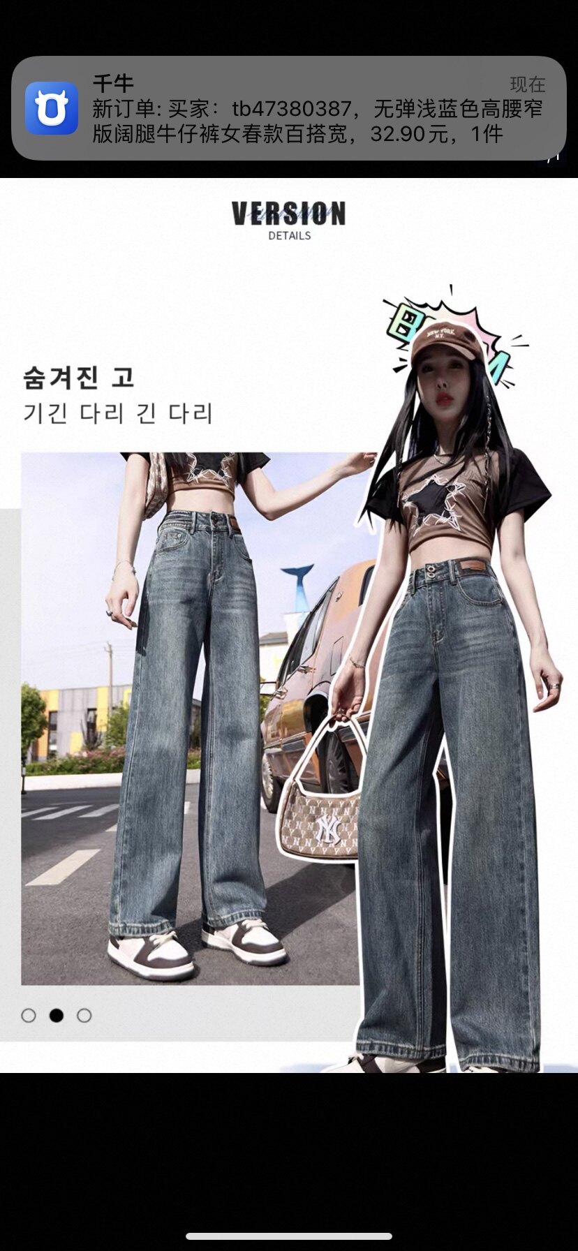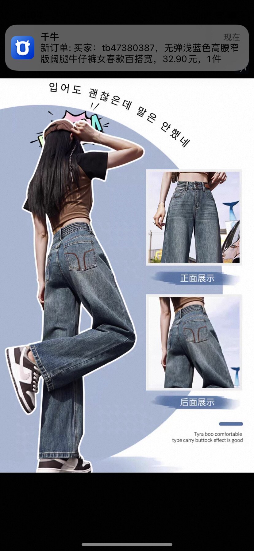 高腰直筒牛仔裤女宽松阔腿2026年春季新款提臀设计感拖地裤子