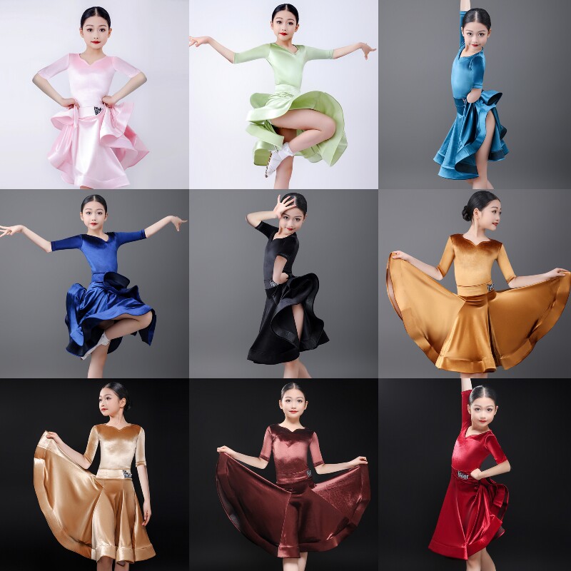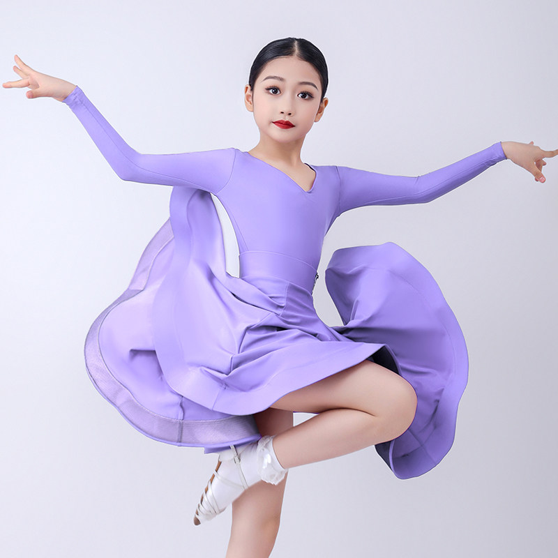 少儿拉丁舞比赛服女童标准赛服长袖儿童规定大摆裙女考级专业服装
