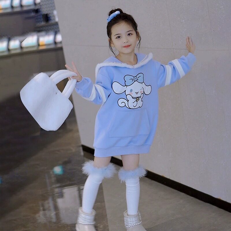 女童连衣裙秋冬款2025新款儿童加绒加厚女孩大童蓝色玉桂狗卫衣裙