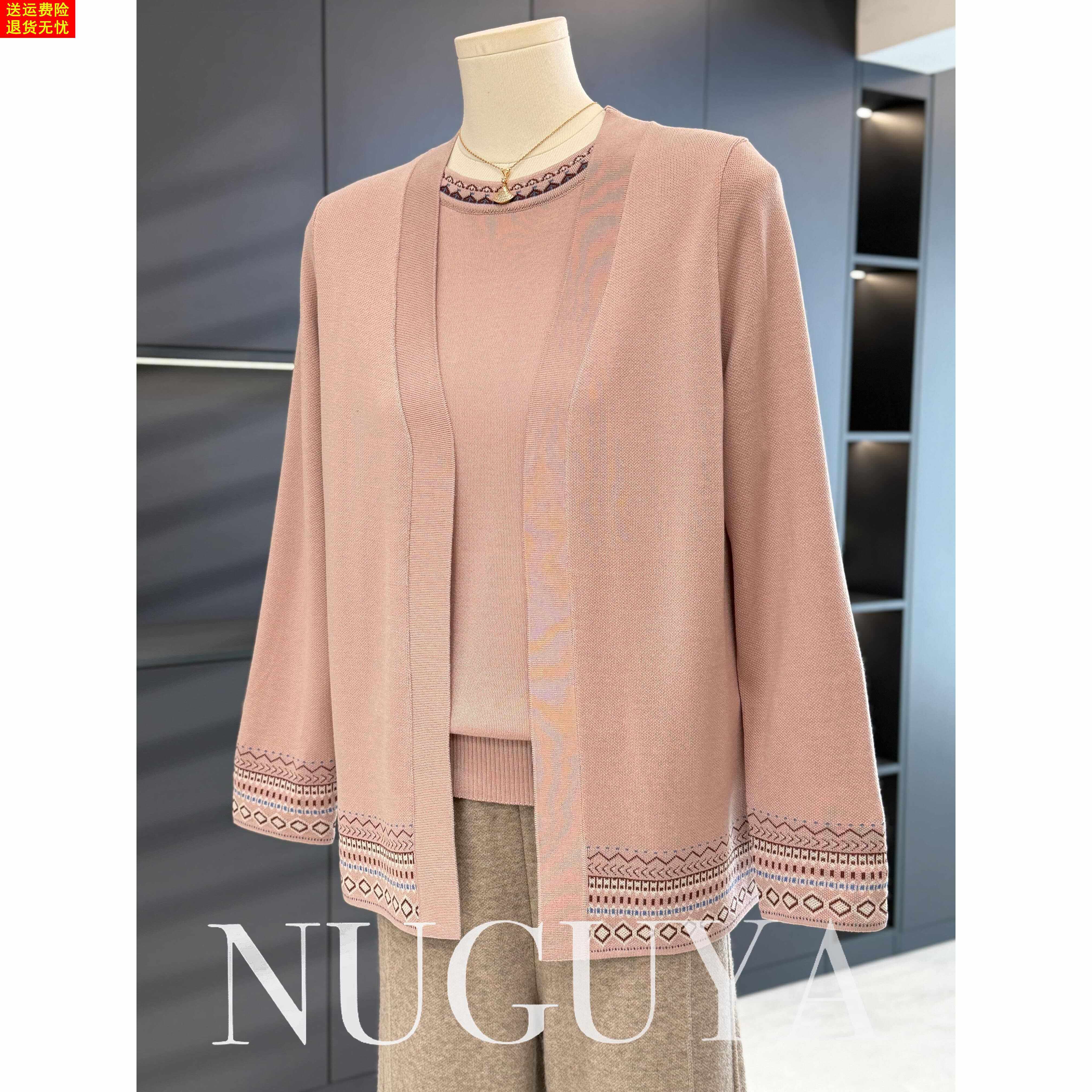 时尚休闲妈妈装针织两件套女春装新款上衣气质百搭外套中老年套装