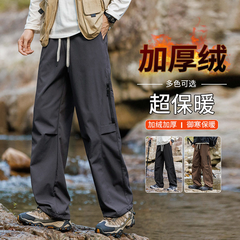 户外青少年加绒裤子男款春季长裤男士工装裤直筒休闲男裤冲锋裤男