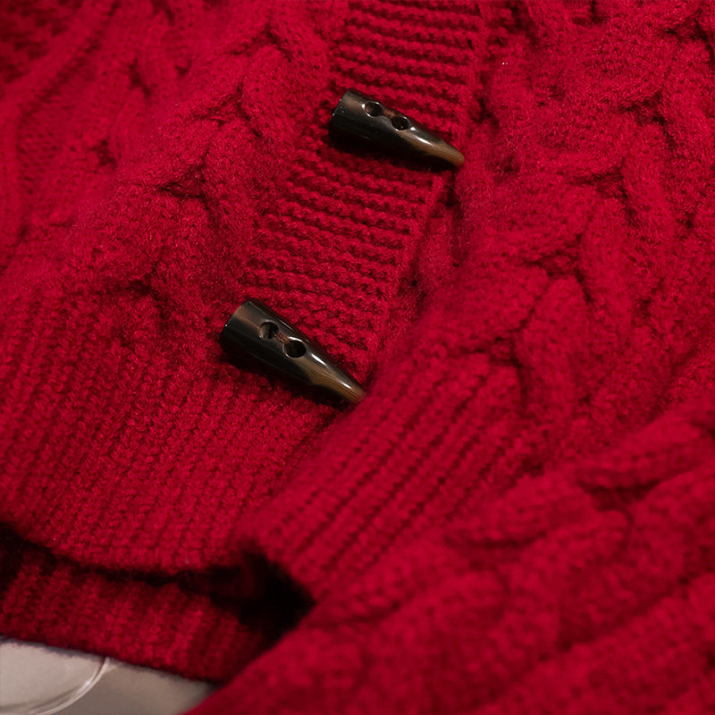 牛角扣红色毛衣高级感外套女春秋款短款针织开衫慵懒风小个子女款