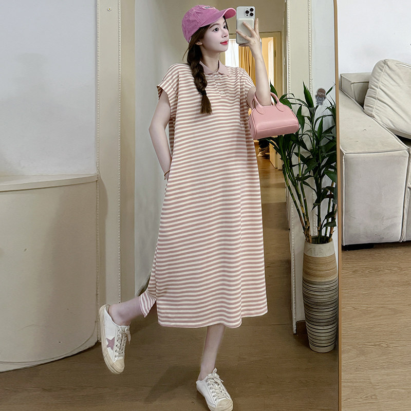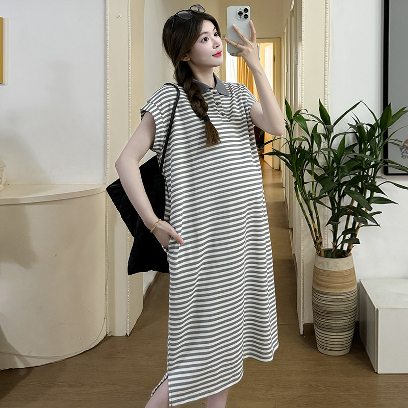 孕妇装2025夏装新款条纹显瘦宽松大码过膝A字连衣裙纯棉薄款裙子