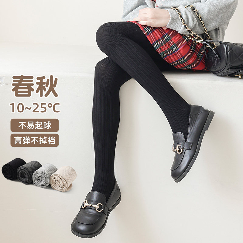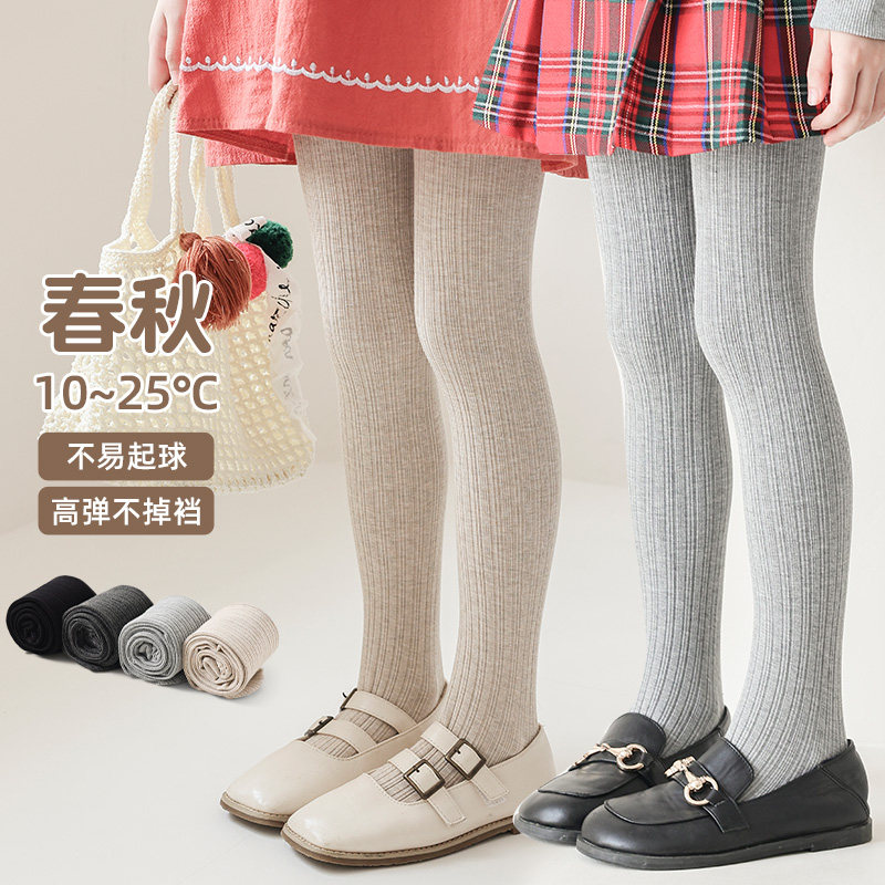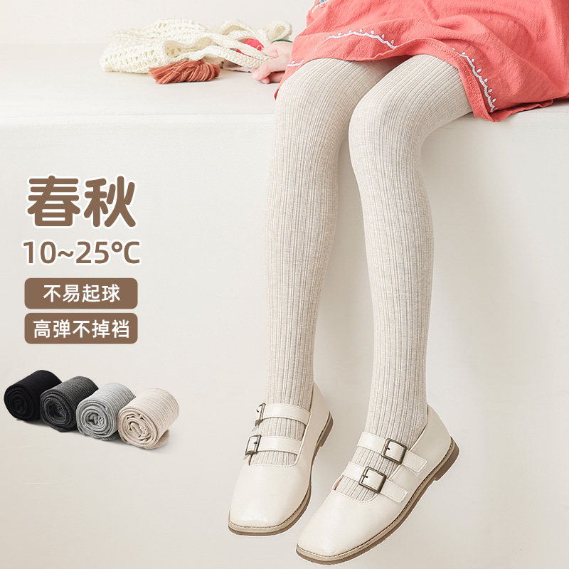女童连裤袜春秋薄款儿童打底裤配裙子连脚袜白色纯棉宝宝连体袜裤