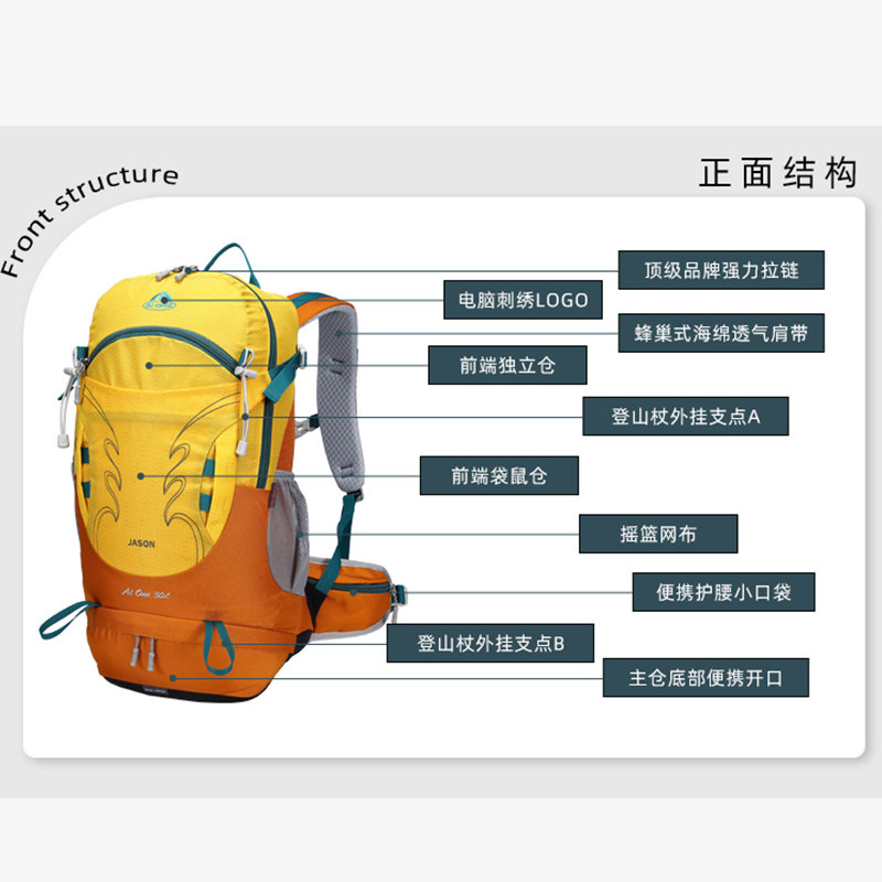品牌户外登山包30升悬浮背负系统小型轻量化徒步双肩包男女通用包