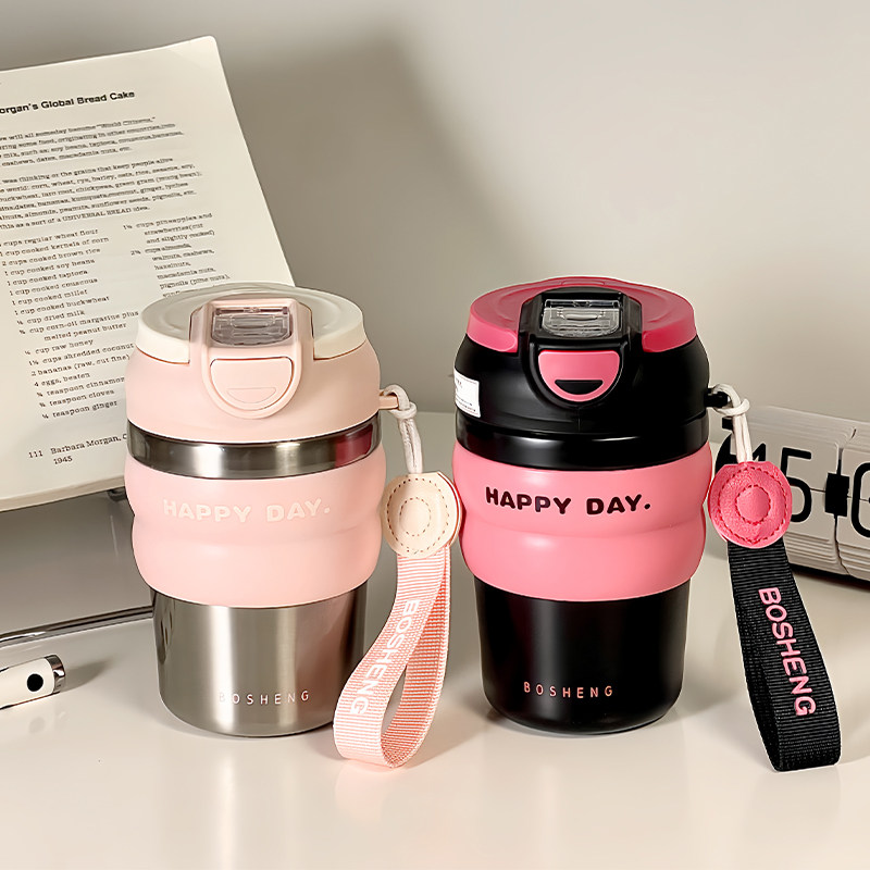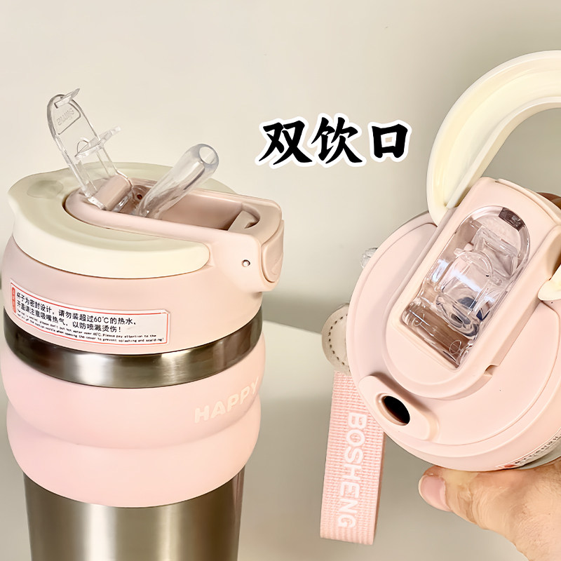咖啡保温杯外带小巧女生高颜值水杯带吸管不锈钢双饮便携随行杯子