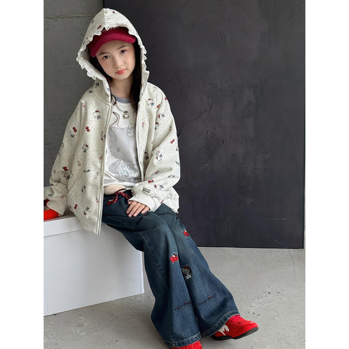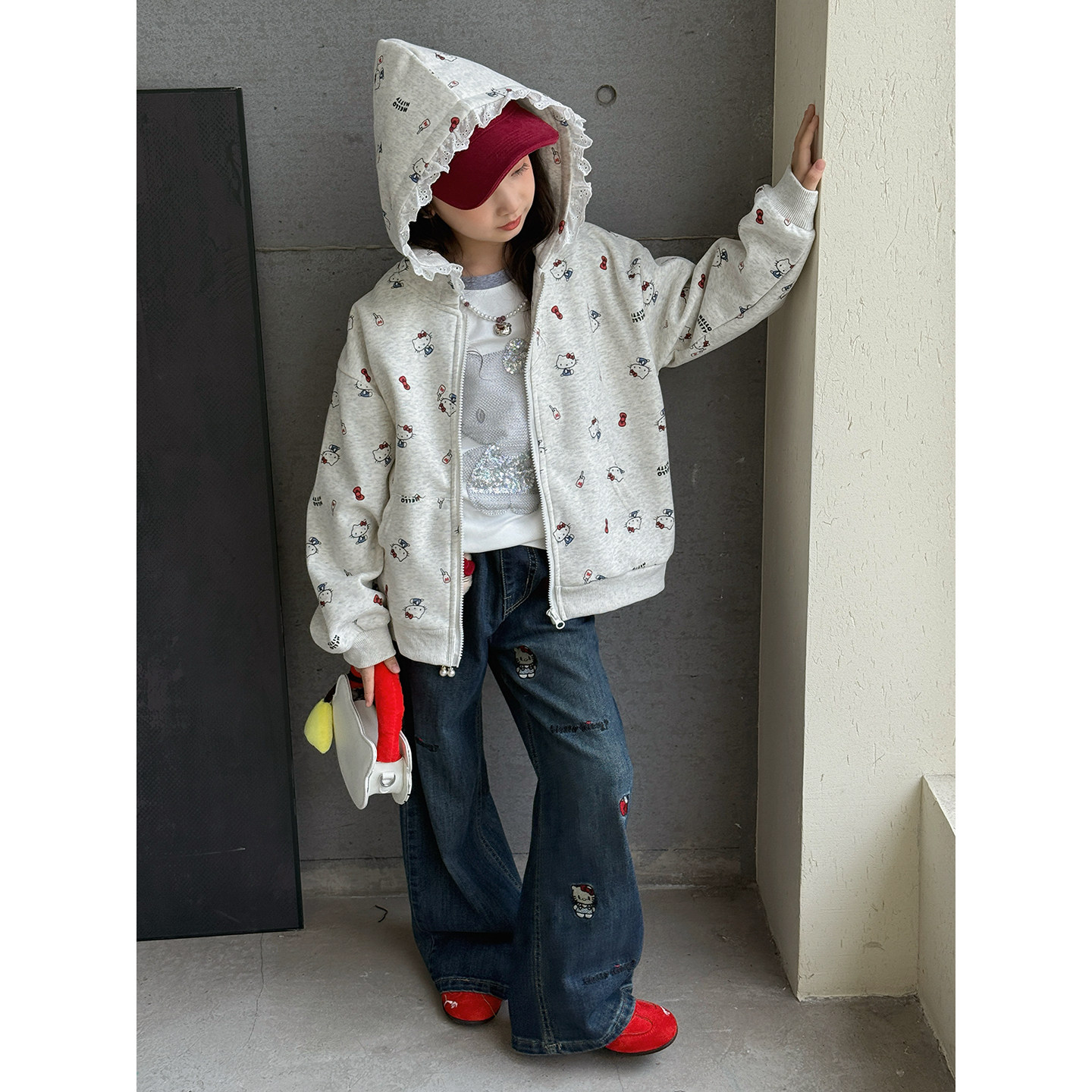 女童牛仔裤2026春季新款儿童卡通加绒裤子中大童休闲直筒裤长裤潮